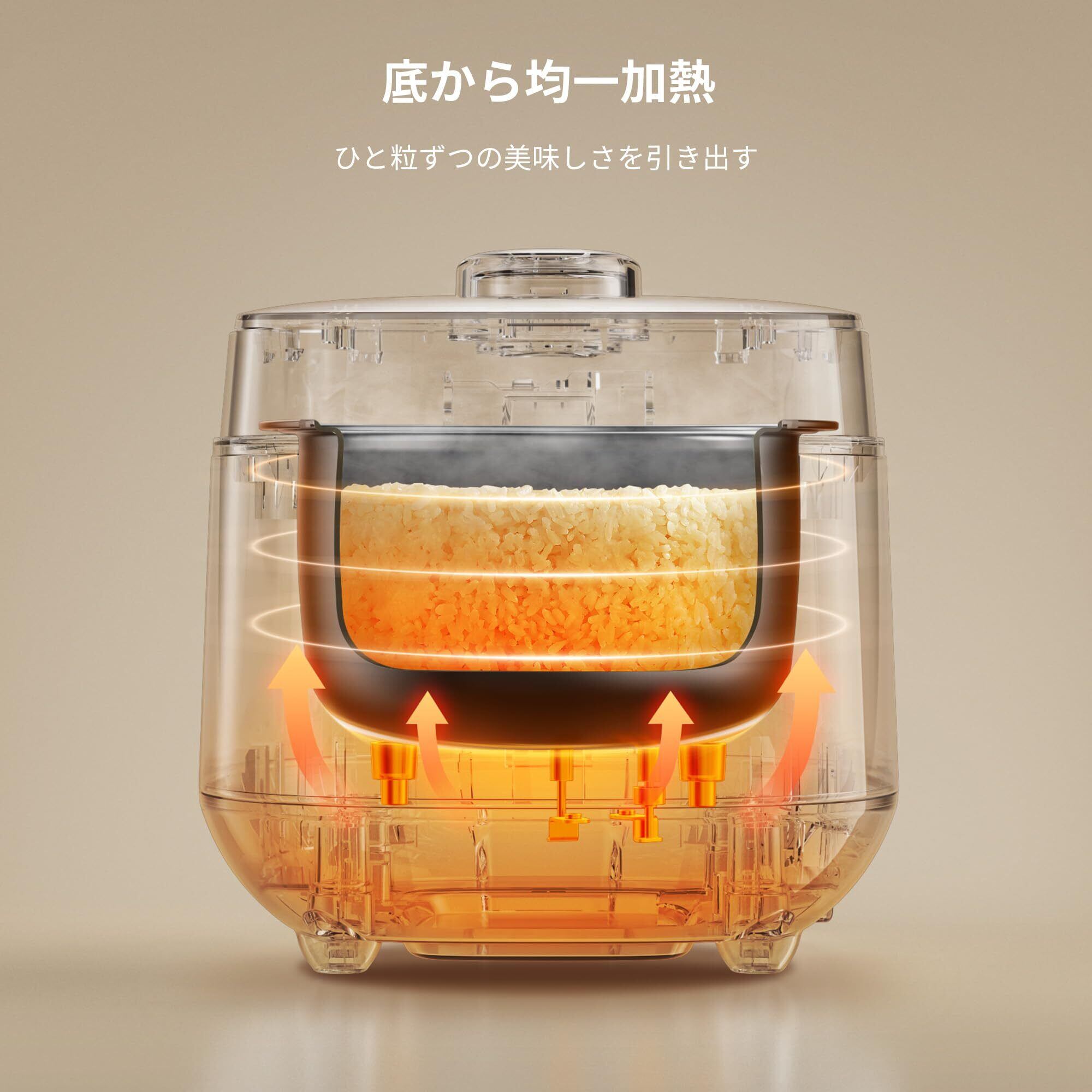 【24時間予約&保温機能】「予約モード」を利用して、3~4合のお米の炊き上げ時間を自由に設定可能。夜に予約し、朝から炊き立てのご飯を堪能! さらに12時間保温機能で、いつでも炊き立ての食感を楽しめます。 【本製品の炊飯器は12時間以上の保温が可能ですが、風味を保つためには炊飯後5時間以内に召し上がることを推奨いたします。5時間を超えますと米粒の水分が蒸発し、食感が著しく低下する恐れがございます。やむを得ず5時間以上保温を継続する場合には、5時間経過時点で一度炊飯器内のご飯を天地返しし、霧吹き等で少量の水分(約5cc)を均一に補給してください。これにより最長12時間までの品質維持が可能となります。】