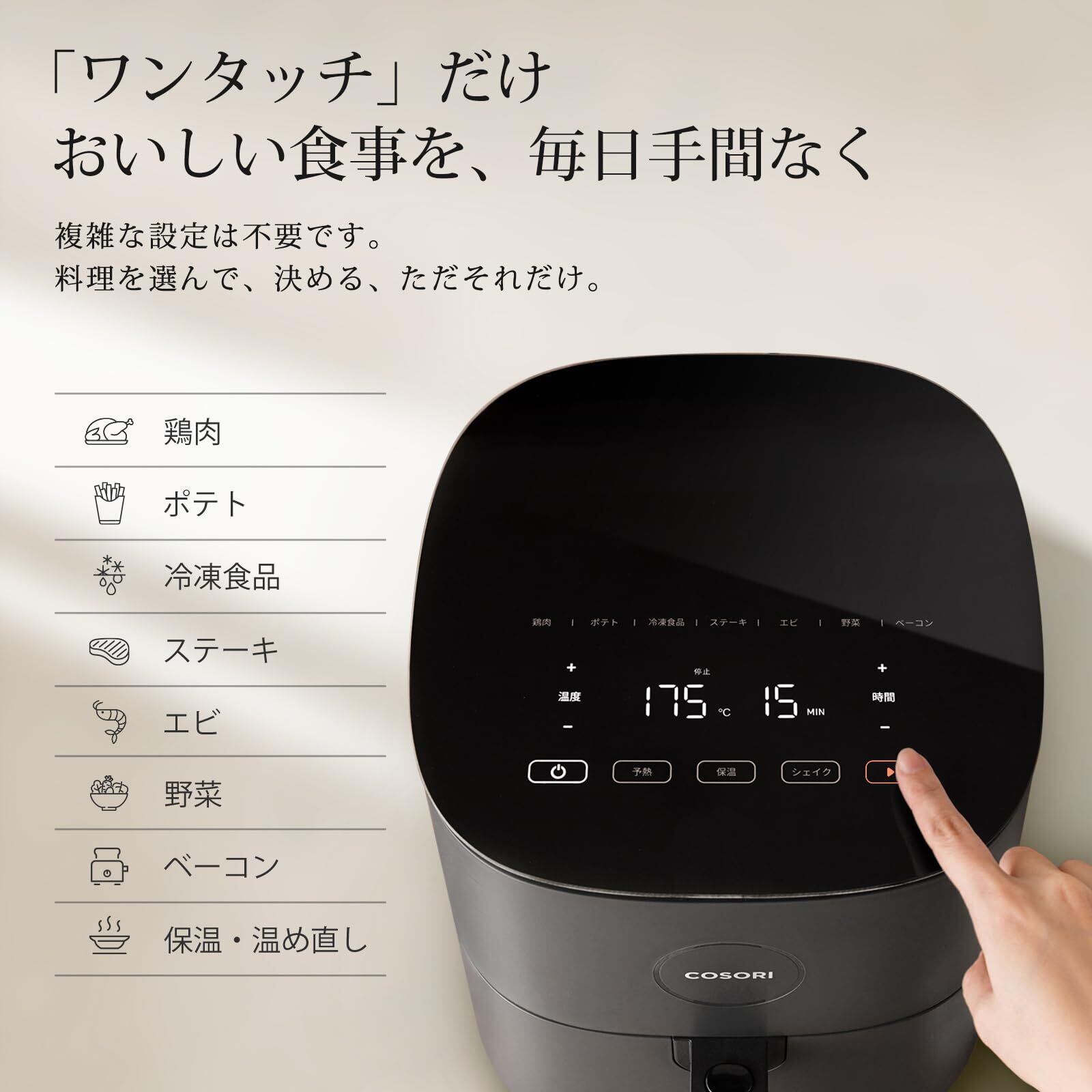 COSORI コソリ ノンフライヤー 4.7L 大容量 家庭用 電気 エアフライヤー 最高温230℃ 揚げ物 ポテト 惣菜 日本語レシピ付き タイマー 自動電源オフ グレー CAF-L501-KJP