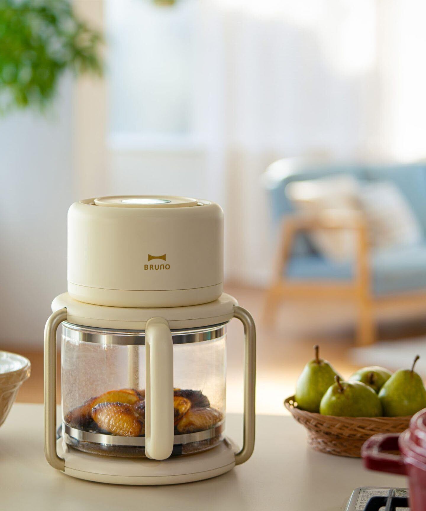 BRUNO ブルーノ エアフライヤー ガラスエアフライヤー ノンフライヤー フライヤー 家庭用 油なし 卓上 アジフライ 自宅用 温度調節 コンパクト 一人暮らし 簡単収納 ノンオイル ヘルシー カロリーオフ 油分カット 揚げ物 温め直し レシピ グレージュ BOE122-GRG | 毎日発送✿はなまる