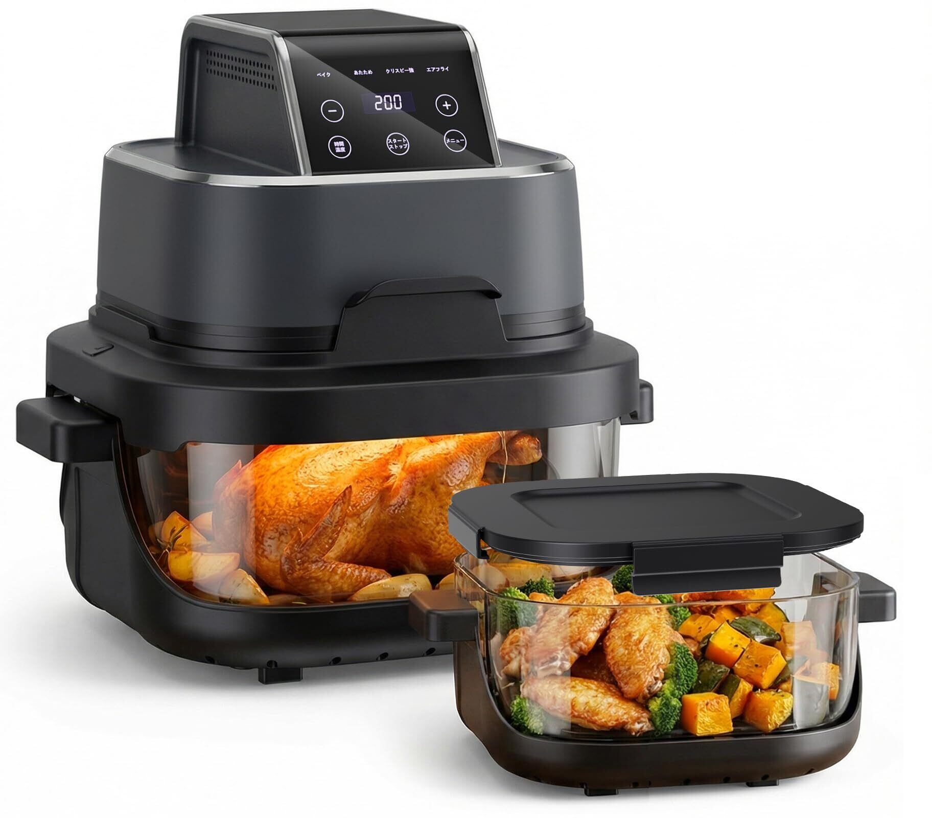 GTPLAYER ノンフライヤー 4L・1.5L 2点セット 大容量 可視窓 ガラスボウル フライヤー ノンオイル 家庭用 揚げ物 惣菜 1-5人 エアーフライヤー 快速調理 4つのスマート調理モード 最高温200℃ 卓上 安全 温度調整 タイマー 取り外し可能 持ち運びもOK PSE認証 黒 BLACK | 毎日発送✿はなまる