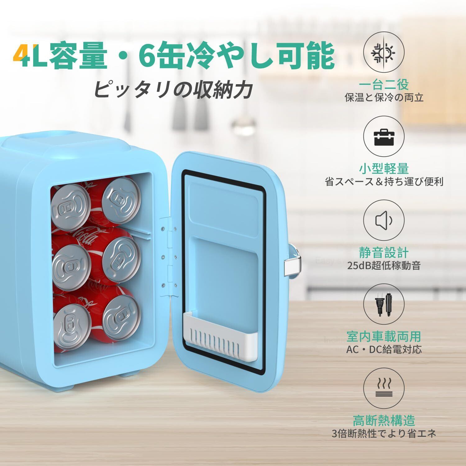 CROWNFUL 小型冷蔵庫 4L 冷温庫 ミニ冷蔵庫 ポータブル 超軽量 持ち運び便利 一人暮らし ペルチェ式 静音 省エネ 室内車載両用 AC 100V DC 12V 給電コード付属 寝室用 職場 車中泊 キャンプ アウトドア 日本語取扱説明書