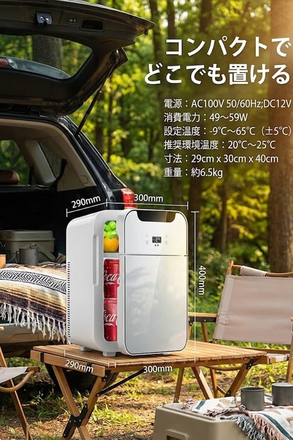 特徴 20Lの大容量, 2ドア冷蔵庫, 温度調節可能