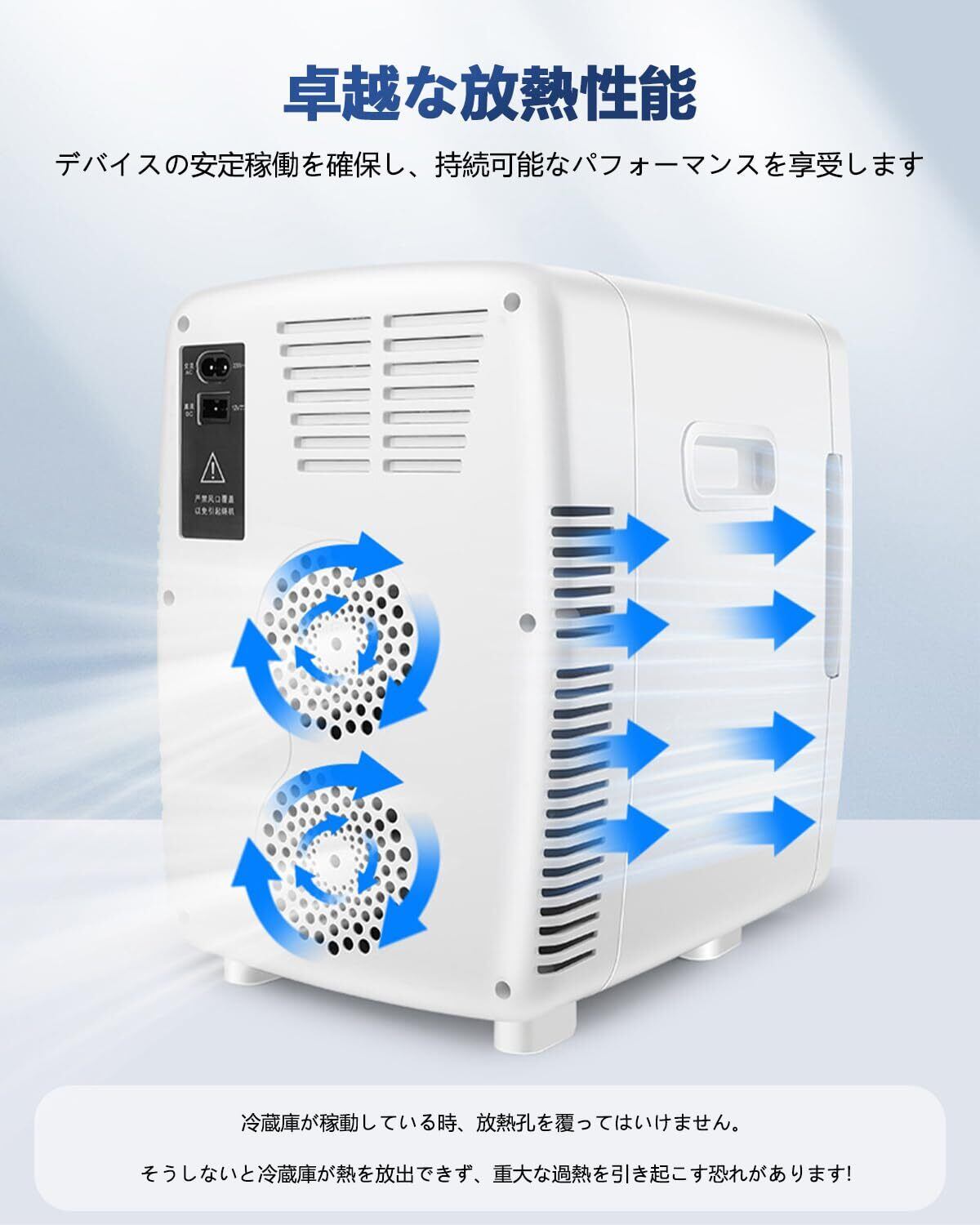 【携帯性があり、静か】コンパクトなサイズで15リットルの大容量を持ち、内蔵の2つの静音ファンが非常に静かです。サイドにはグリップが設けられており、普通の冷蔵庫よりも持ち運びが簡単です。オフィス、ホテル、寝室、車で静かで涼しい空間を楽しんでください。