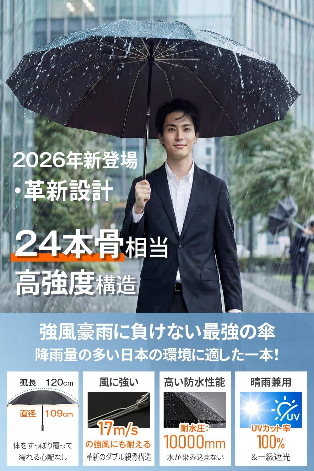 【2026年新登場!24本骨相当の超耐風傘】W骨構造(2本骨/組×12組)を採用、耐風性能を強化した長く使い続ける折りたたみ傘が登場しました。 24本骨相当の強度を実現、17m/sの強風にも耐える超耐風おりたたみ傘です。通常モデルの倍以上安定性、耐久性、耐風性がアップし、突風やビル風でも壊れにくく、台風シーズンや急な天候悪化にも対応できます。リュックや車内常備用折り畳み傘としてもおすすめ
