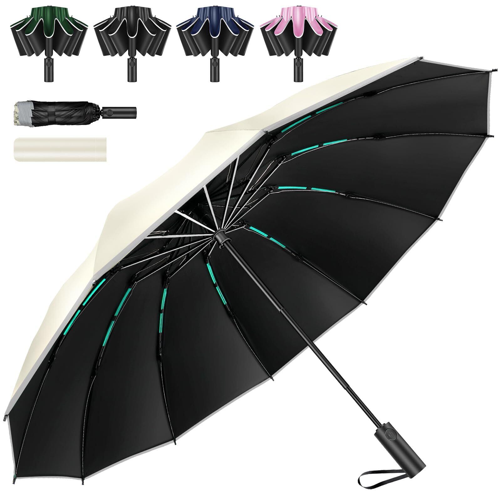 VARNIC 折りたたみ傘 ワンタッチで自動開閉 折り畳み傘 大きいサイズ 耐風撥水 丈夫耐久 豪雨対応 梅雨/台風対策 UVカット 遮光遮熱 日傘 晴雨兼用 反射テープ 収納ポーチ付き おりたたみ傘 男子日傘 UPF50+ 男女兼用 | 毎日発送✿はなまる