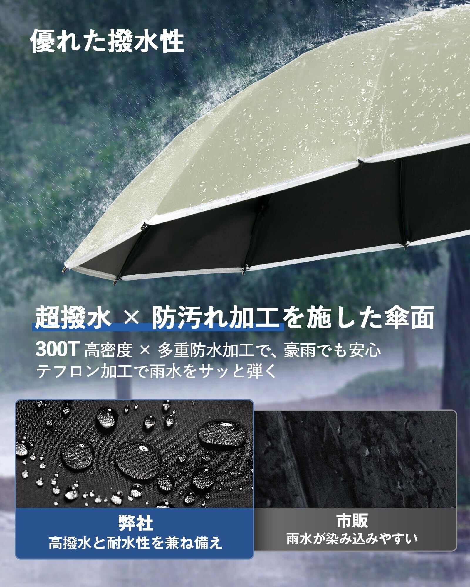 【12本の傘骨&耐強風設計】強風や梅雨対策として、折りたたみ傘は12本の丈夫な傘骨を採用しており、台風や暴雨の天候にも耐え、変形しにくいです。傘骨の鋼製接続部には防錆コーティングが施されており、水がかかっても錆びにくく、折りたたみ傘の使用寿命を大幅に向上させます。