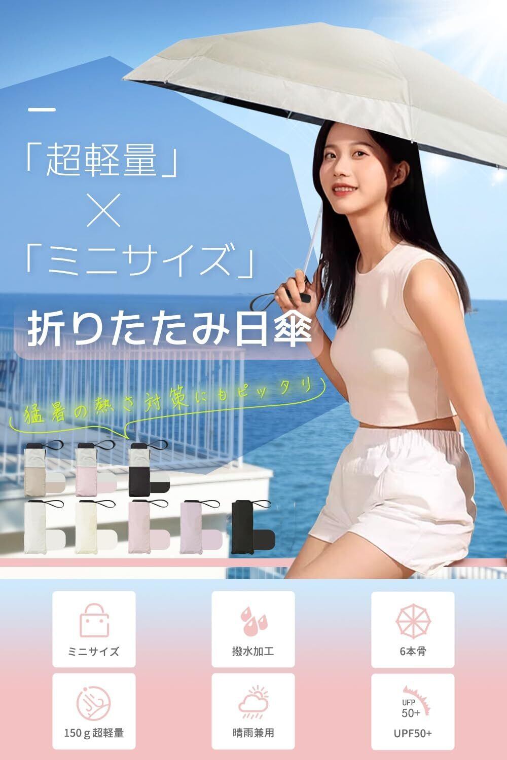日傘 折りたたみ傘UVカット UPF50+ 100 遮光 遮熱 日焼け防止 熱中症対策 紫外線遮断 6本骨 撥水耐風 晴雨兼用 小型 コンパクト 携帯便利