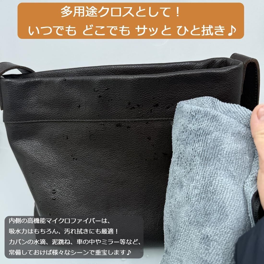 サイズと素材 収納時サイズ:28cm×40cm(コンパクトに折りたたむと28cm×20cm) 素材:吸水性・速乾性に優れたマイクロファイバー(ポリエステル) 軽量設計で重量はわずか200g。濡れたレインコートや雨具をそのまま収納可能。