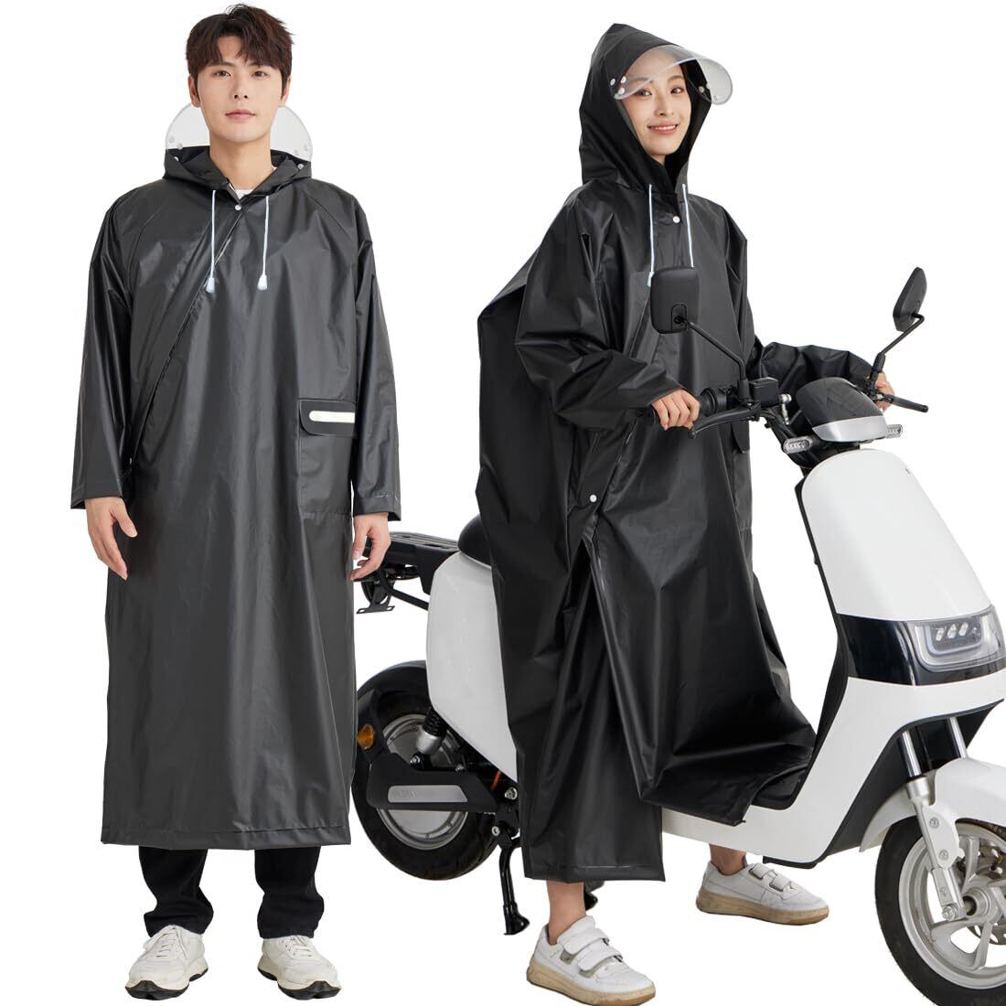 【2重バイザー&リュック専用空間】8000mm耐水圧の軽量EVA素材ロングレインコートは、リュック対応設計と調節可能なダブルバイザーを備え、自転車通勤時の強風や雨から顔と体をしっかりガードします。(※バイザーに保護シートがあり、剝がすとクリアになります)背面にはリュック専用の膨張スペースを設けており、学生のリュックからビジネスバッグまで、荷物を収納したままご着用いただけます。