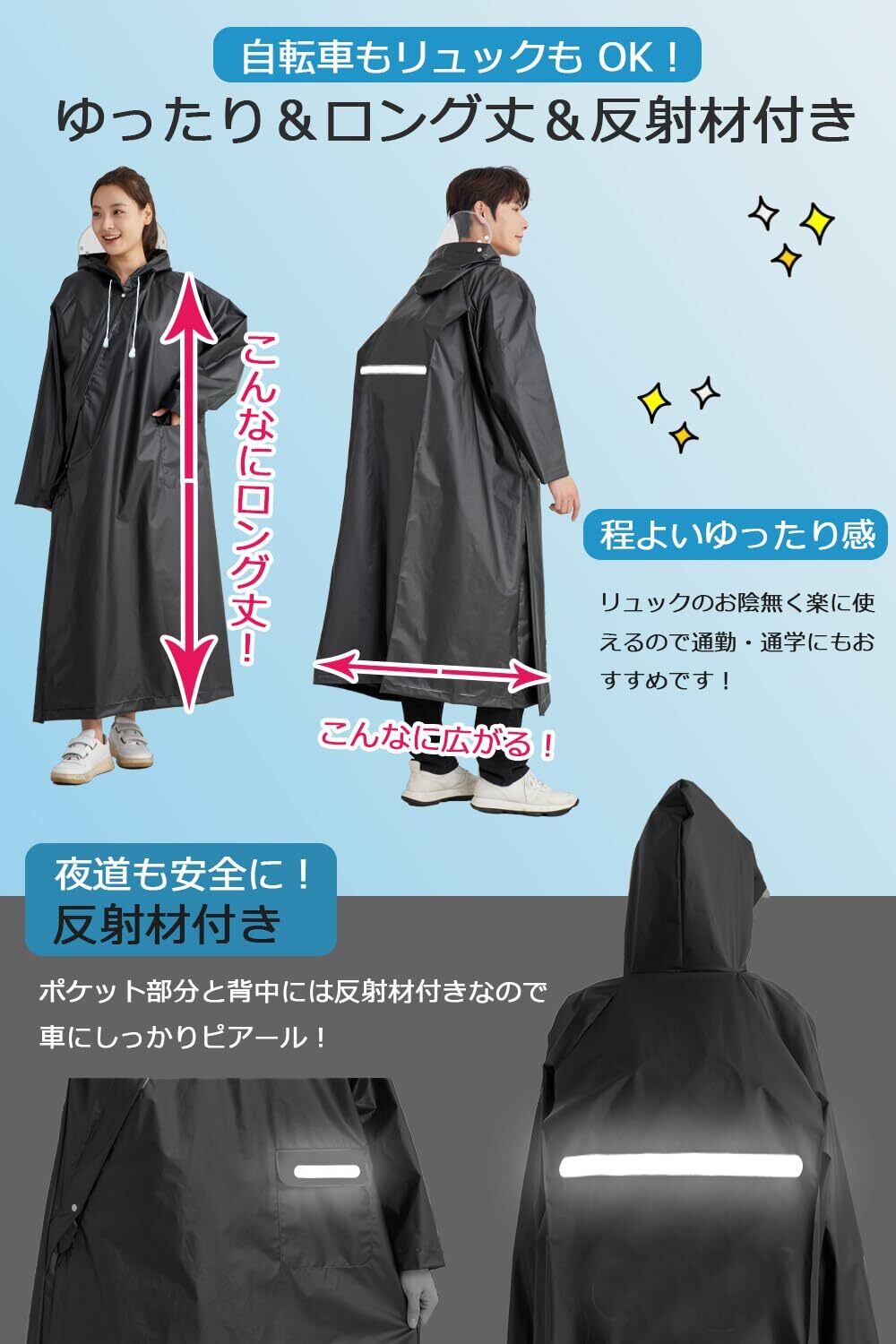レインコート自転車 リュック対応 レインコート レディース メンズ ロング丈 軽量 反射材付き 通勤 通学 防災 梅雨対策 様々の場面に適用