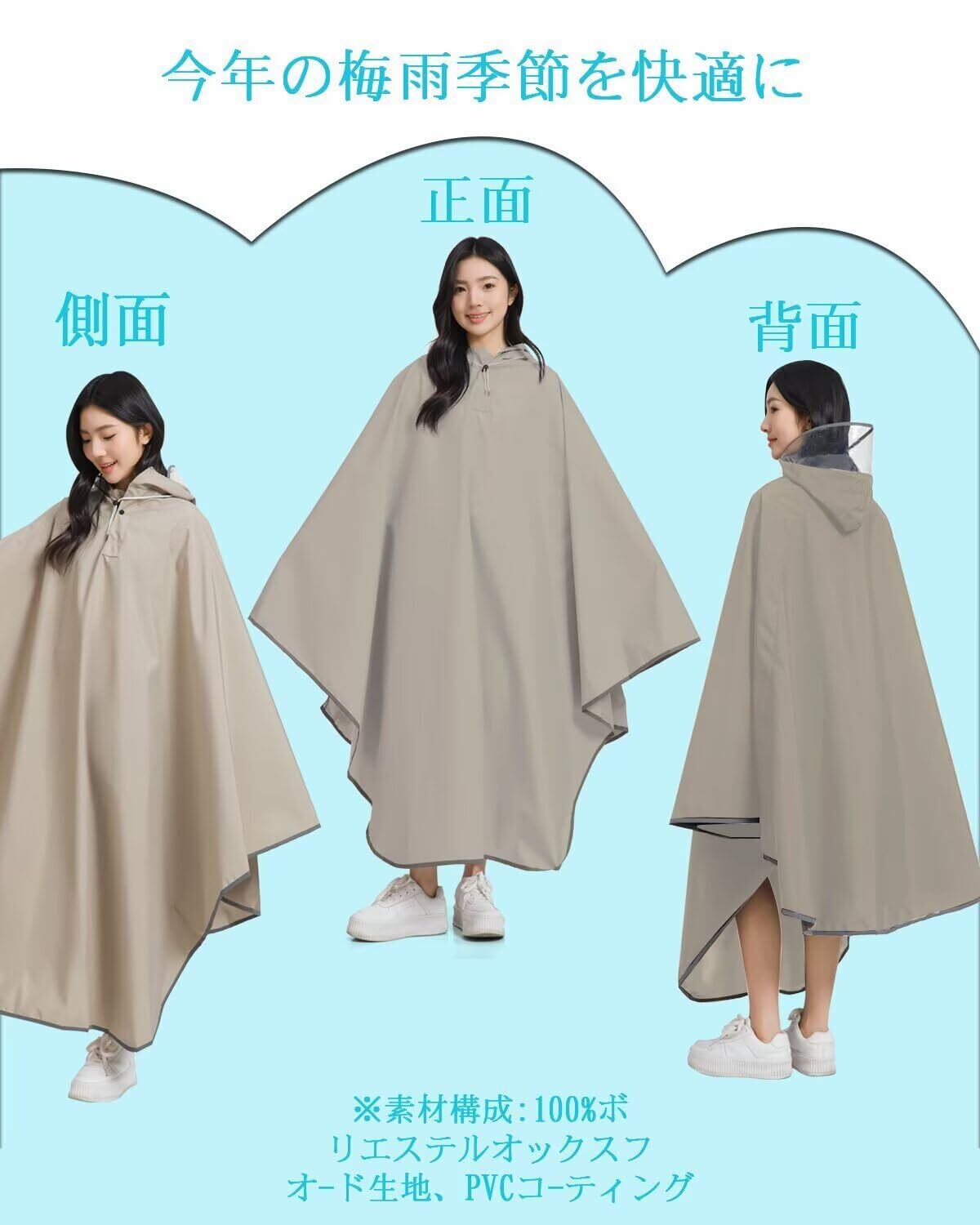 【防水素材で全天候対応】雨の日もおしゃれを諦めない!高品質ポリエステル+PU素材を使用した当店自慢のレインコートは、長年の愛用に耐える耐久性を実現。従来のレインウェアとは一線を画す、機能性とデザイン性の融合で、雨の日も特別な気分に。