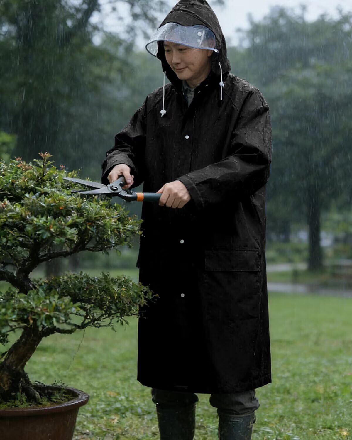 ロング丈&大きめサイズで、あらゆる体型とシーンをカバー:膝下までしっかりガードするロング丈設計で、自転車・バイク運転時も雨や泥はねから守ります。背面のスナップボタンを外せば、リュックサックを背負ったままでもゆったり着用可能。大きめサイズで動きやすく、通勤から作業時まで、あらゆるシーンでご活用いただけます。