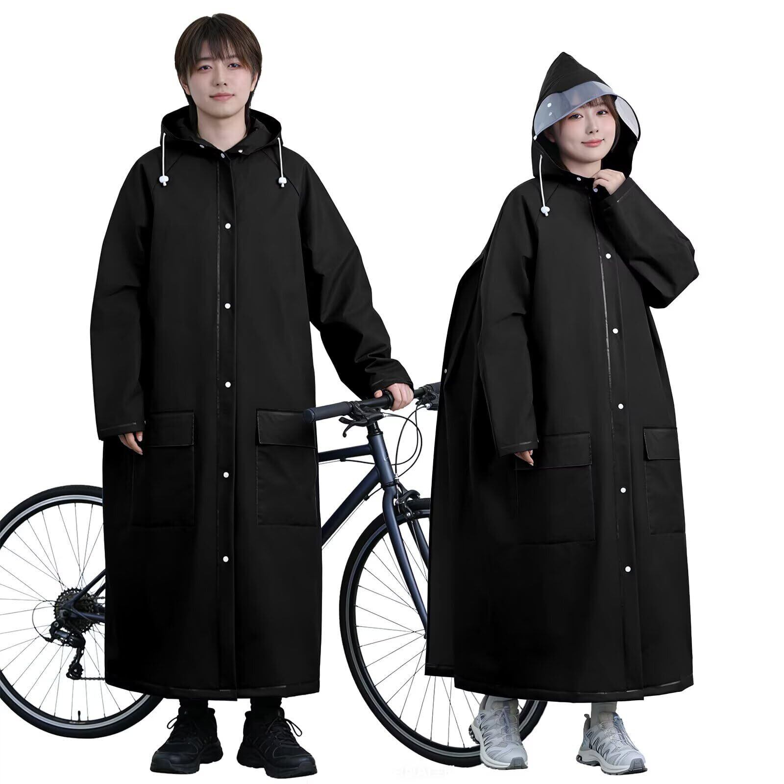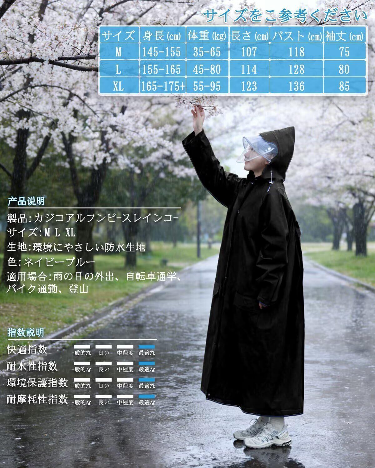 Mekenntn レインコート レディース メンズ 用 二重透明レインバイザー付き レインウェア 自転車 リュック対応 ロング丈 レインコート ポンチョ かっぱ 自転車 防風防水 雨具 超軽量 豪雨 台風 梅雨対策 レインポンチョ 男女兼用 通勤