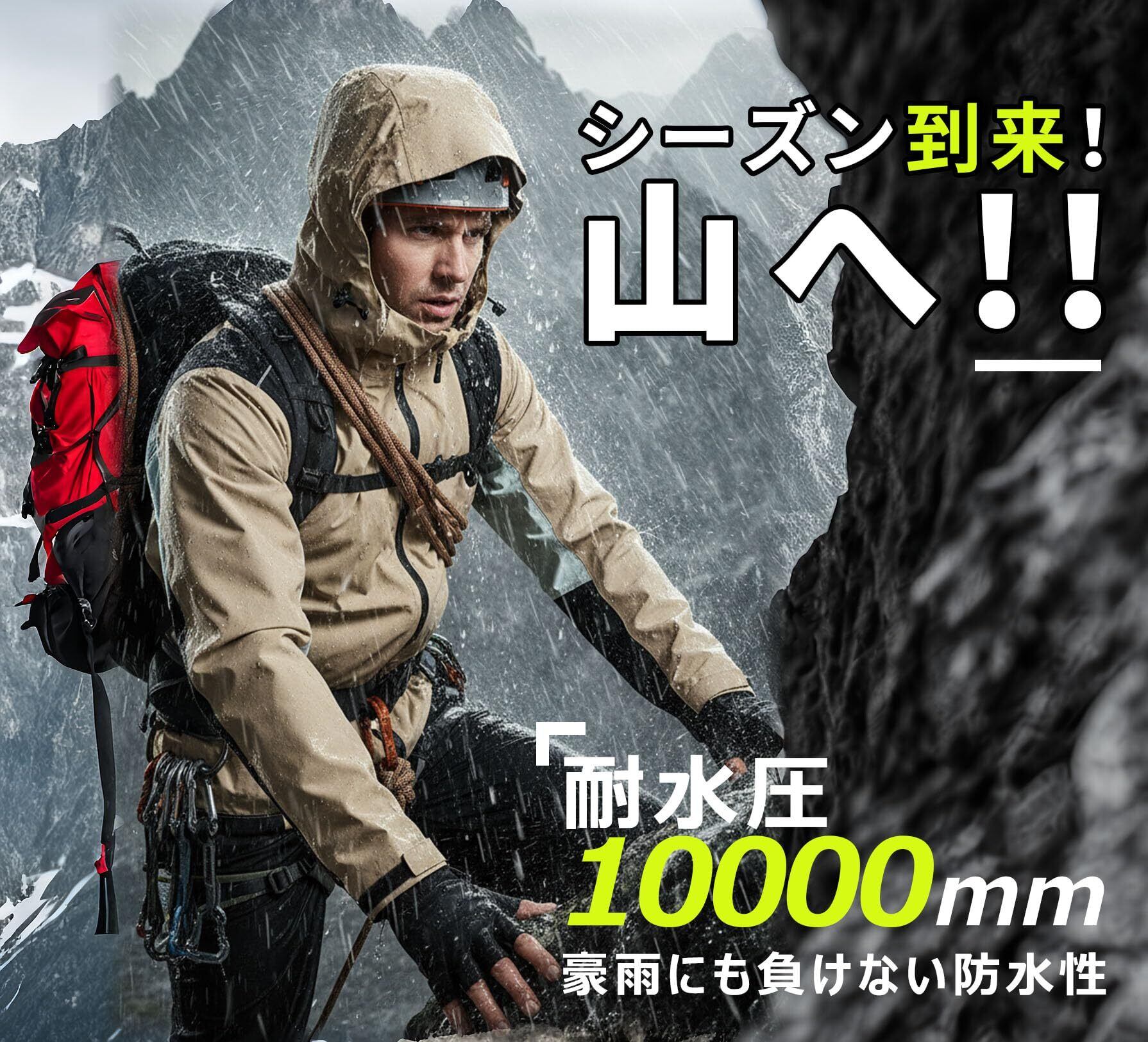 【透湿性・蒸れなし】耐水圧10,000mm、透湿度5,000g/m2・24hと、豪雨であっても完全に防ぎ不快感も無く快適に使えます。透湿素材を採用、水滴よりも小さい穴が無数に空いており、ウエア内の蒸れは逃します。裏地全体にメッシュ素材、肌が生地に直接触れない、長時間にも快適なさらっとした着心地を保ちます。