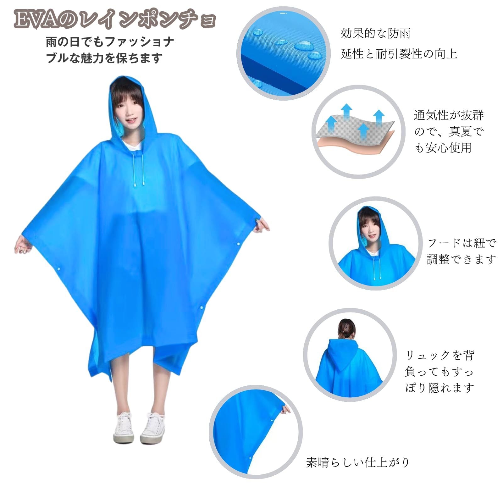 レインポンチョ EVA素材 ポンチョ メンズ レディース 学生 高校生 自転車用レインコート リュック対応 通勤通学 防災グッズ 雨合羽 大人用 フリーサイズ 複数回使用可能 防水防風 雨具 梅雨対策 軽量 男女兼用