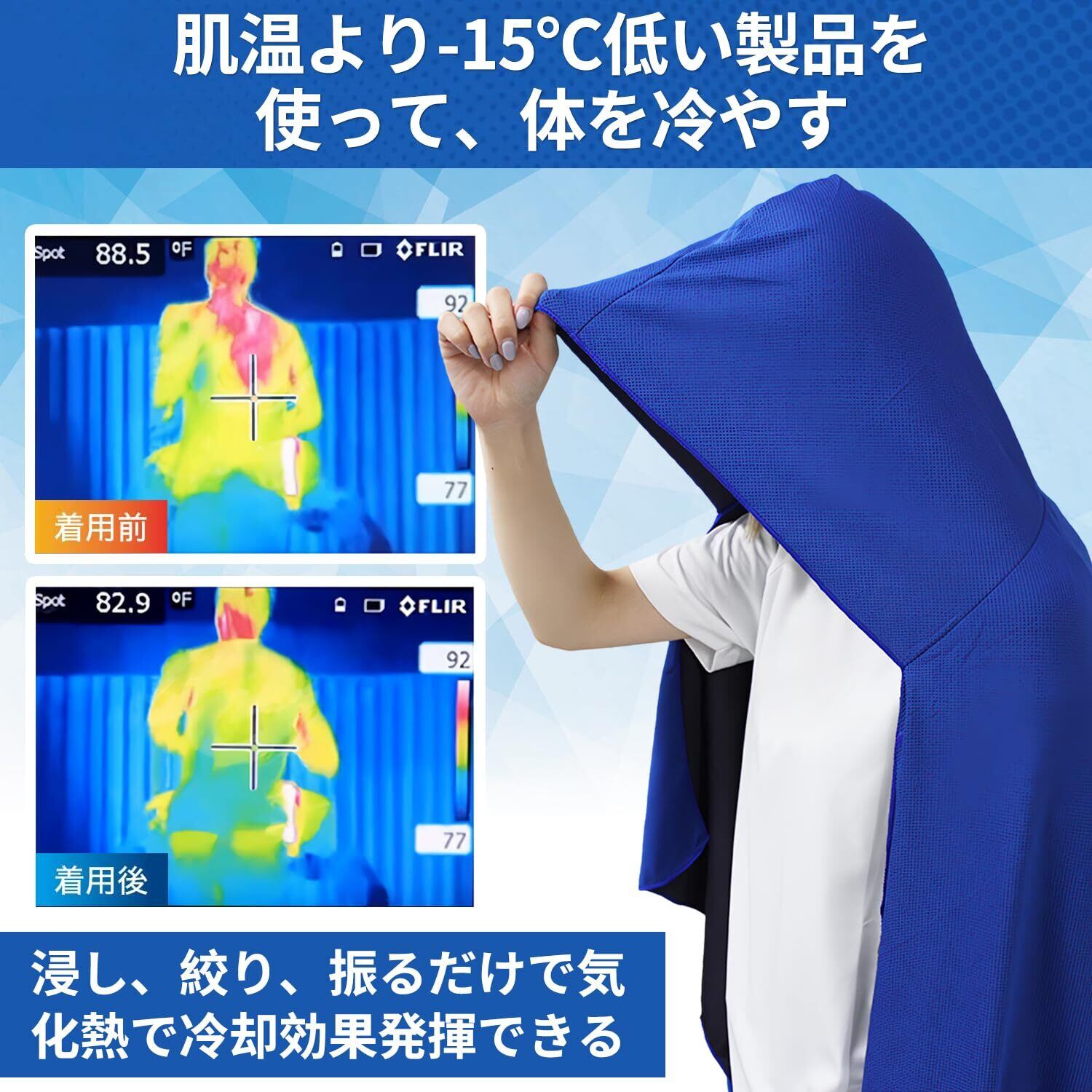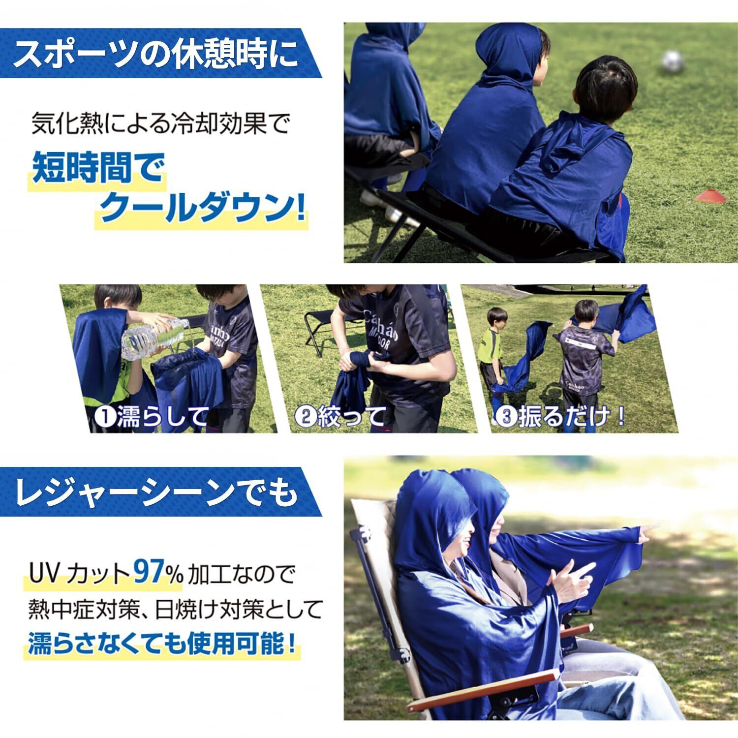 肌温度-15℃の冷感ポンチョ 冷却 クールタオル 冷感タオル 冷感 れいかんグッズ クールケープ スポーツタオル 冷感 ポンチョ サッカー 熱中症対策 暑さ UV対策 スポーツ 日常生活 ネイビー