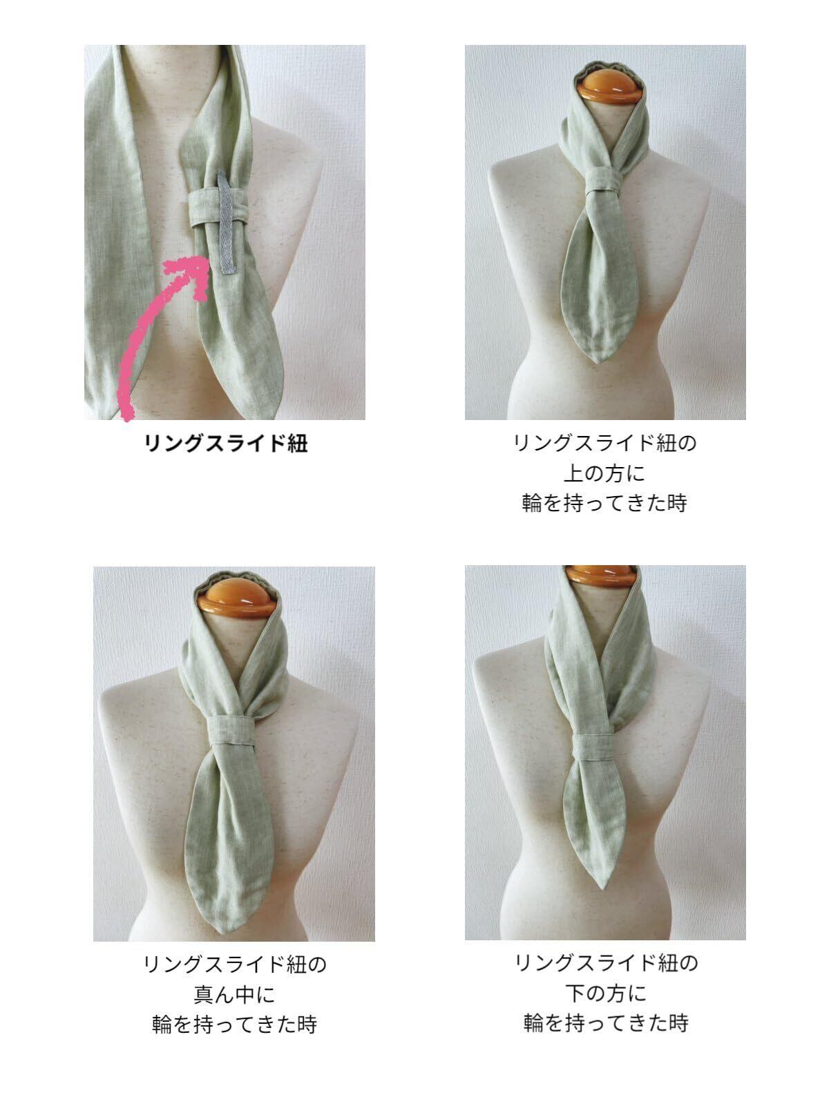 オーガニックコットン100%のふんわり肌触りの良い素材。輪っかになったリングに通すだけの簡単装着。