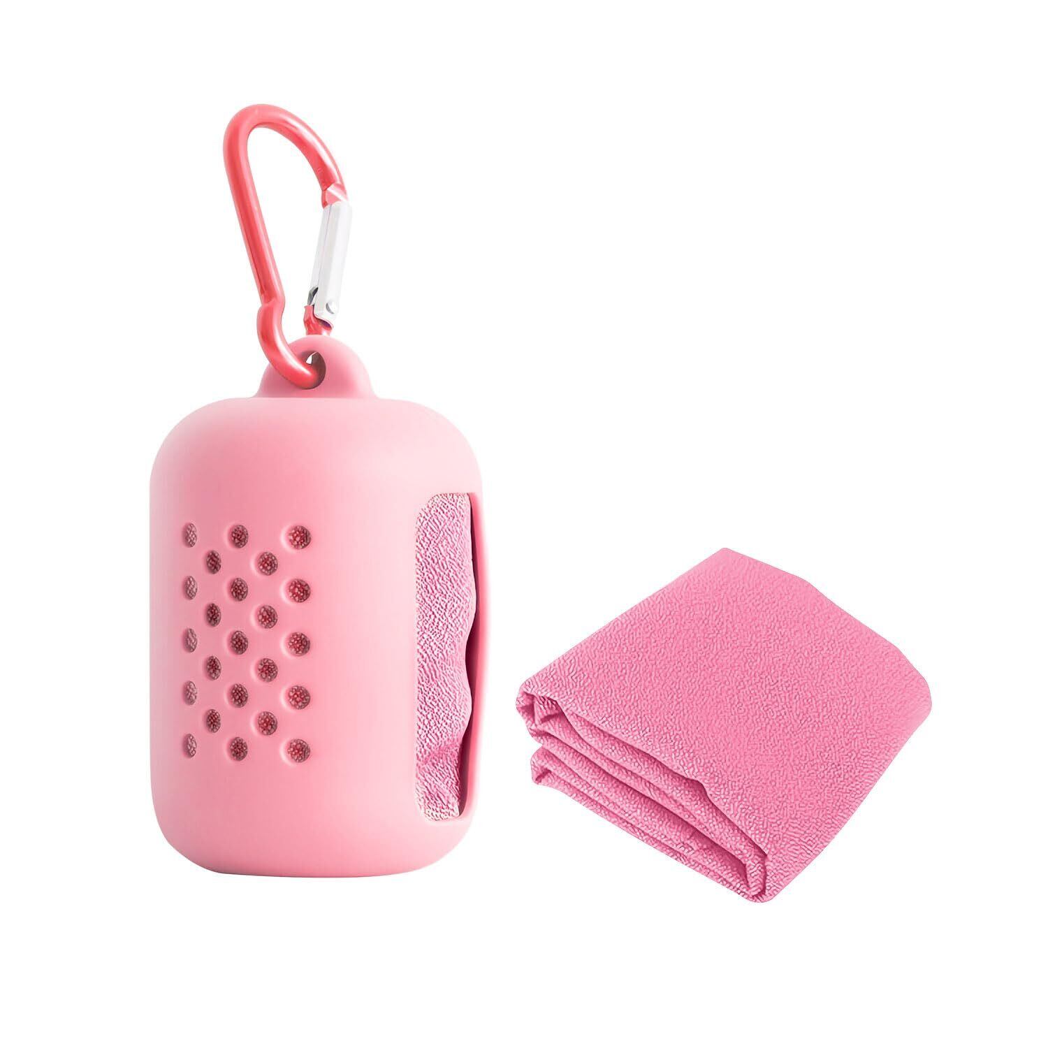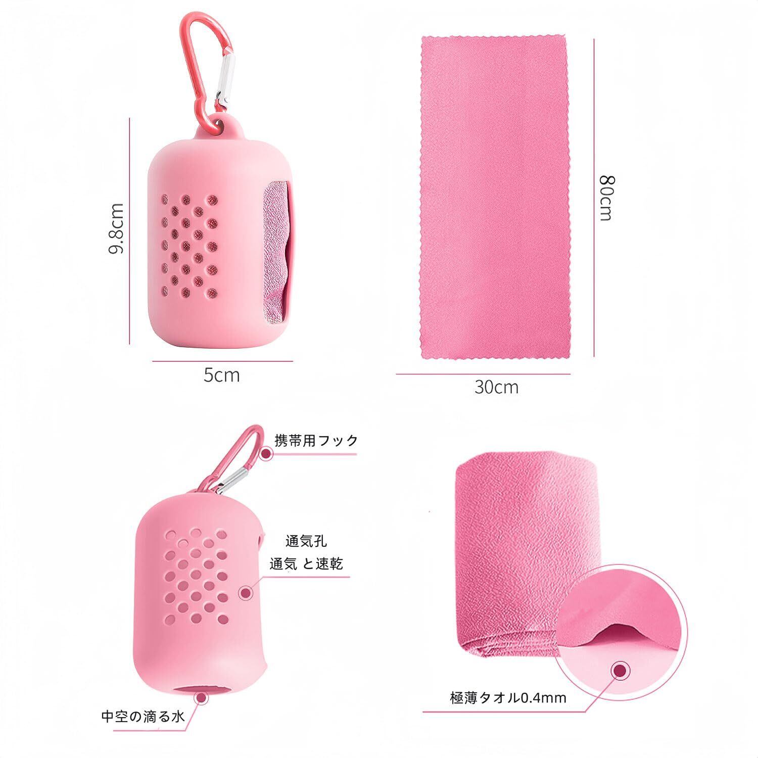 冷感タオル スポーツクールタオル 速乾 通気 軽量 長くする 超吸水 5秒冷却 冷感持続 暑さ/熱中症対策 首ひんやりグッズ 日焼け対策 スポーツ イベント アウトドア 登山 遠足 再利用可能シリコンスリーブパッケージ 軽量携帯便利 (80×30cmピンク)