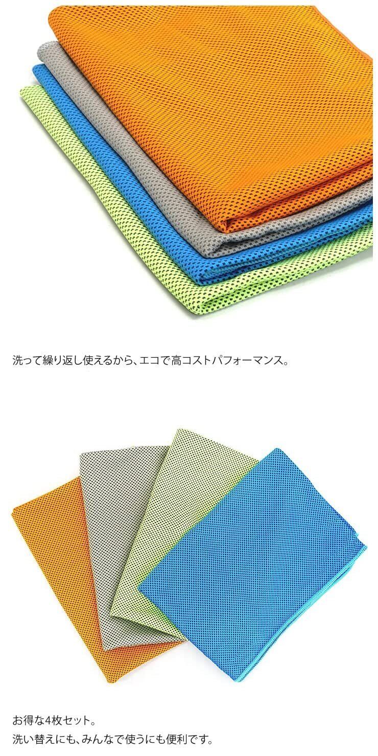 クールタオル 4枚セット 冷感タオル 冷却タオル 吸水 速乾 ひんやり 冷たい クール タオル 熱中症対策