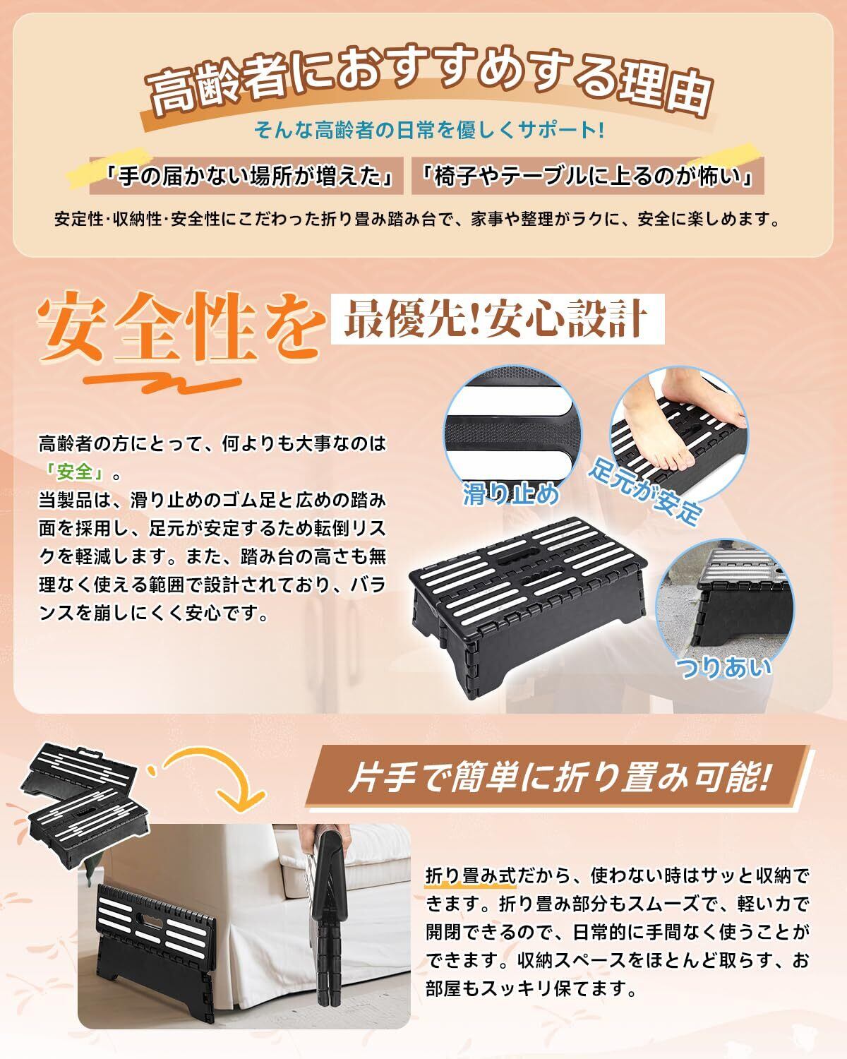 【多目的利用】高い段差や車の乗り降り、洗車時や足場として幅広く活用できます。足の置き場には滑り止めが付いているので安心してご使用いただけます。