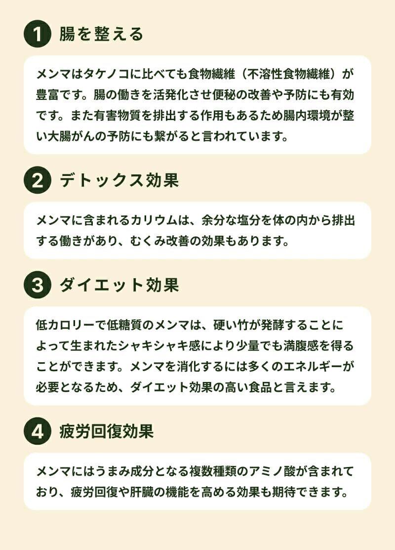 純国産のメンマを、添加物を使わずに仕上げました。 富山県産の麹由来の植物性乳酸菌SIY8菌株を用いて発酵させた、独自の製法によるメンマです。 ほどよい酸味があり、発酵食品特有の匂いが少なく、食べやすい味わいに仕上げています。