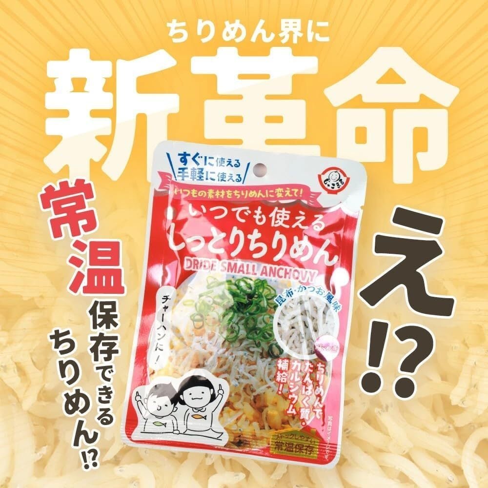 常温保存が可能!最大10ヶ月 冷蔵不要で長期保存できる「しっとりちりめん」。特殊製法により柔らかく、しっとりとした食感を実現しました。 昆布・かつお風味の旨味たっぷり 昆布とかつお出汁で味付け済み。開封後そのままご飯やサラダ、冷ややっこなどにかけてお召し上がりいただけます。 保存料無添加・安心品質 保存料を使用せず仕上げた無添加商品。いろいろなご年齢の方に安心してお召し上がりいただけます。 栄養補給に最適 たんぱく質・カルシウムが豊富で、筋トレ・ダイエット中の栄養補給や日々の健康維持にぴったりです。 便利で幅広い用途 常備菜やお弁当、非常食やアウトドア食材としても活躍。いつでも手軽に使える便利なちりめんです。