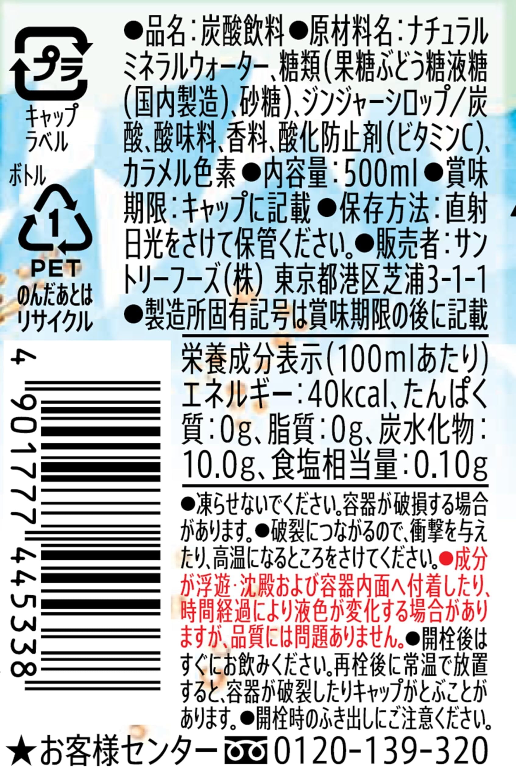 サントリー 天然水 特製ジンジャーエール 炭酸飲料 500ml×24本