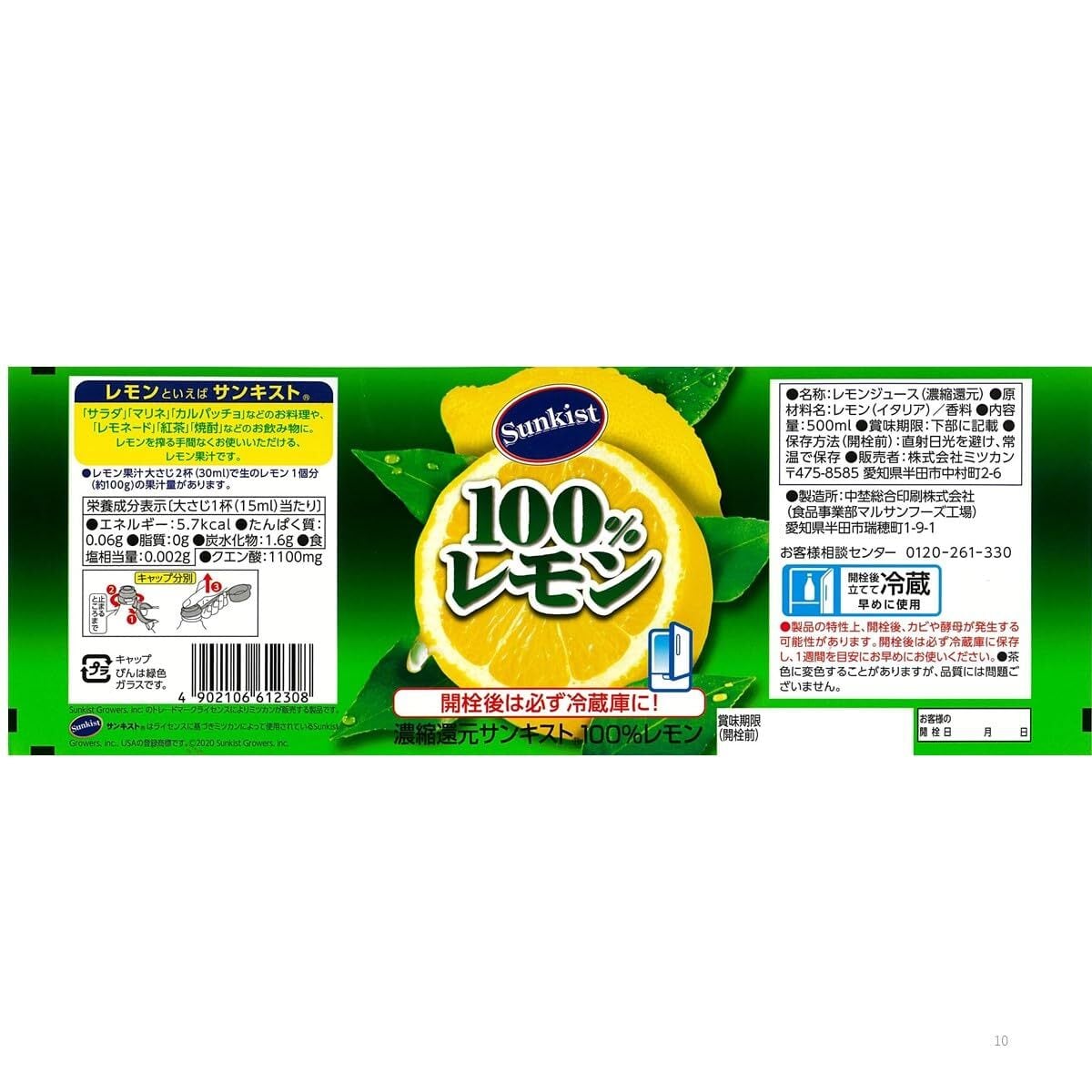 ミツカン サンキスト100%レモン 500ml レモン果汁 レモン汁 ボトル