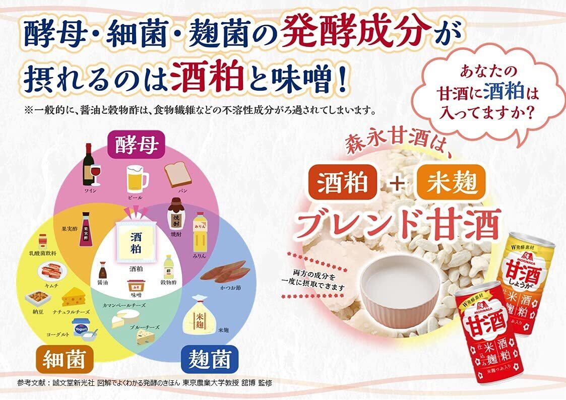 「酒粕」と「米麹」を使用した森永製菓の甘酒です。