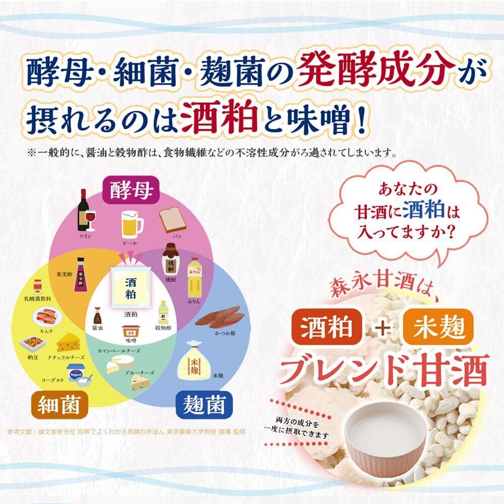●森永甘酒の特徴であるこだわりの酒粕と米麹の味わいを楽しめる本格的な甘酒