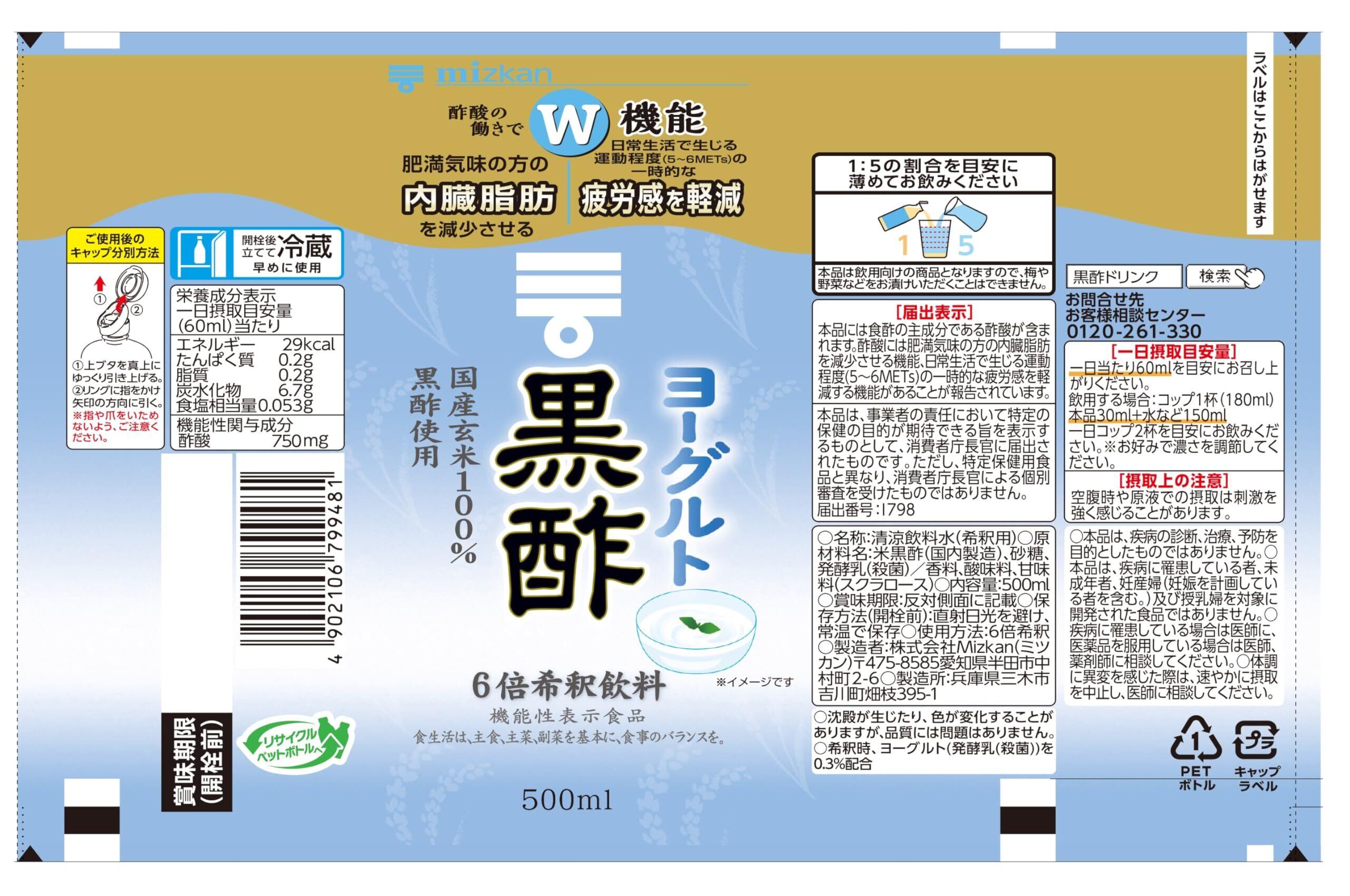 ミツカン ヨーグルト黒酢 500ml×2本 機能性表示食品 飲むお酢