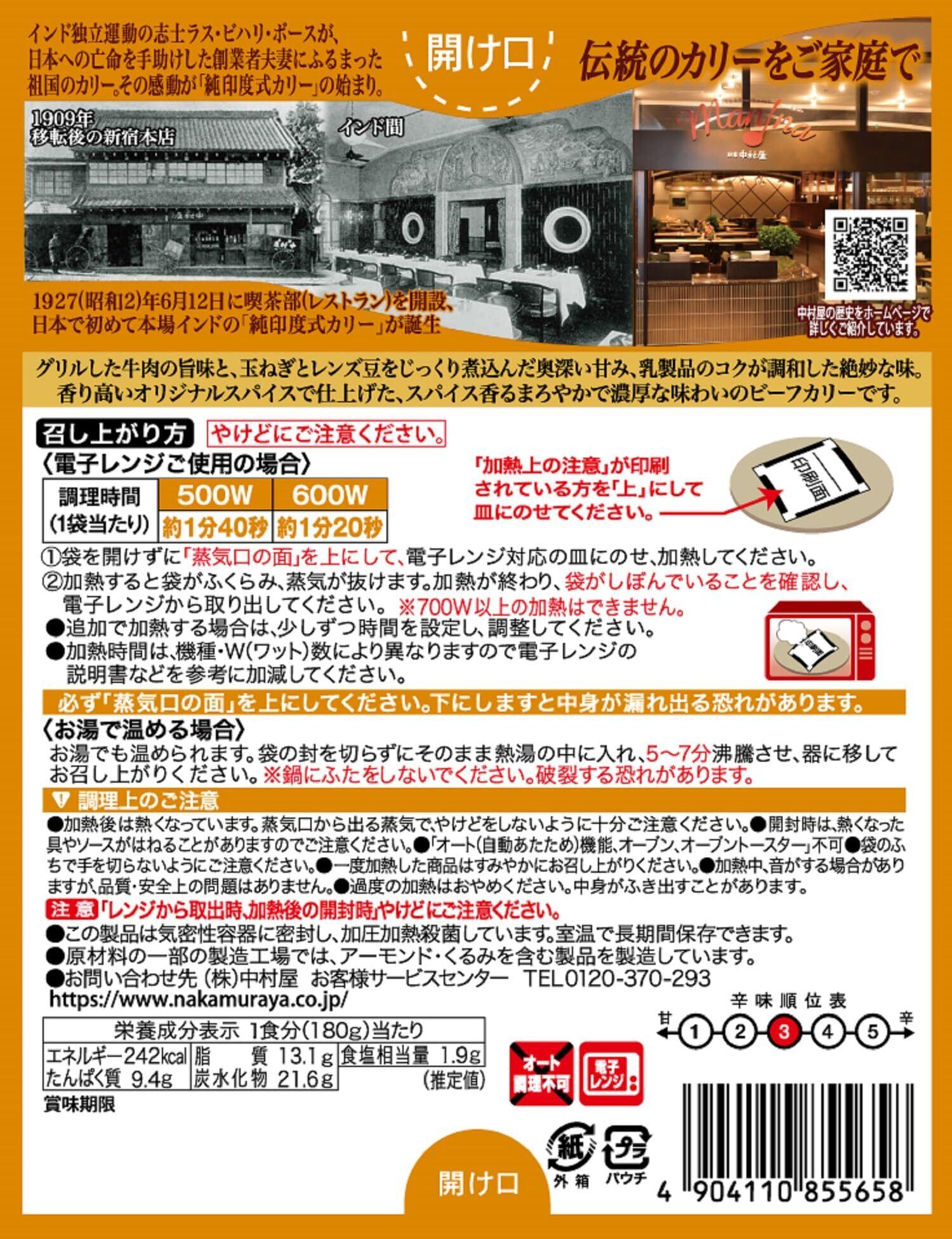 新宿中村屋 中村屋 インドカリー濃厚ビーフ 180g ×5個 レンジ調理可