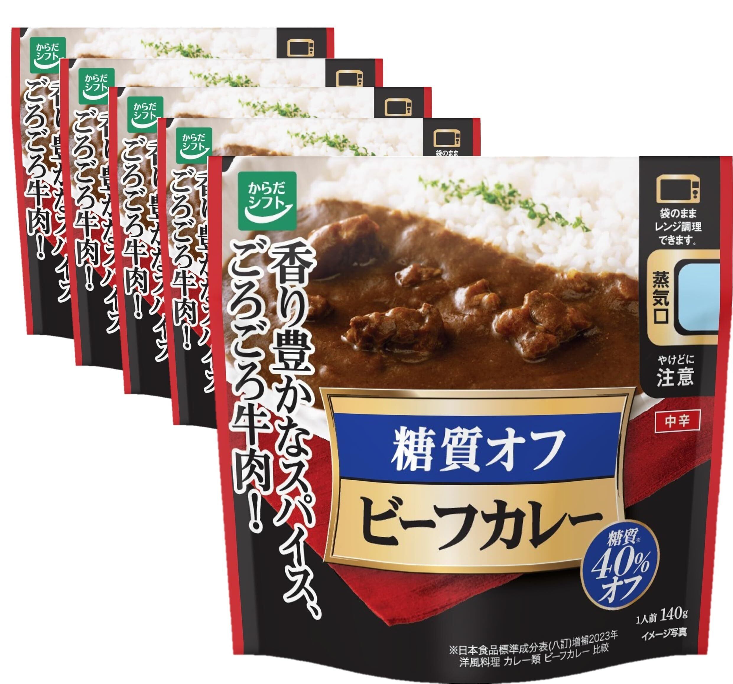 からだシフト 糖質オフ ビーフカレー (1人前140g ×5個)糖質40%オフ (電子レンジ対応パウチ/時短調理) 一人暮らしの方にも (19種類のスパイス使用) レトルト 糖質カット 糖質コントロール