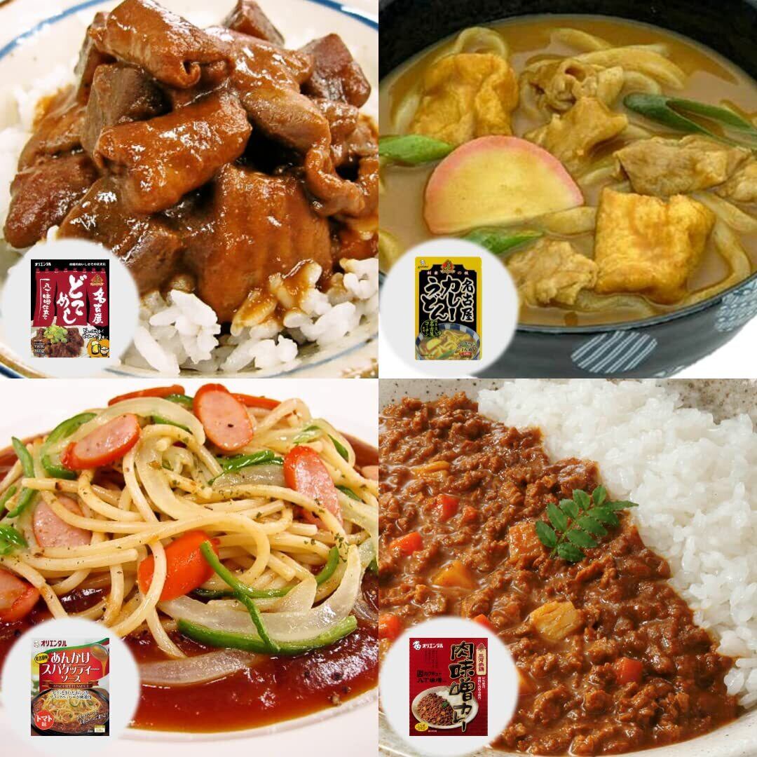 どてめし、あんかけスパゲッティ、肉味噌カレー、名古屋カレーうどん、今や全国区になった、名古屋めしをセットにしました。