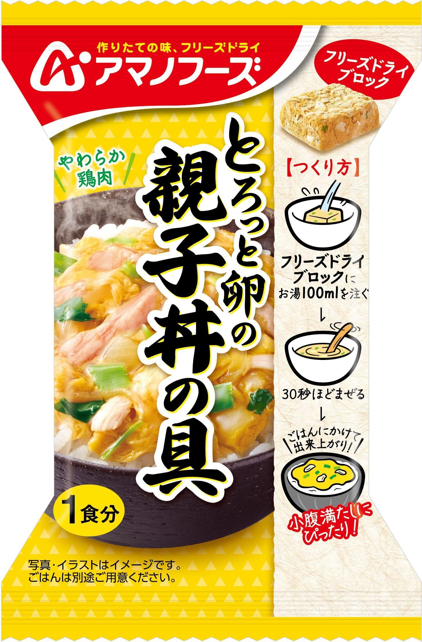 ●お湯を注ぐだけで出来る、小腹満たしにぴったりな親子丼の具 ●とろっとした卵とやわらかく蒸した鶏肉入り ●かつおと昆布の合わせだしで仕上げた風味豊かな味わい ●1食あたり92kcal
