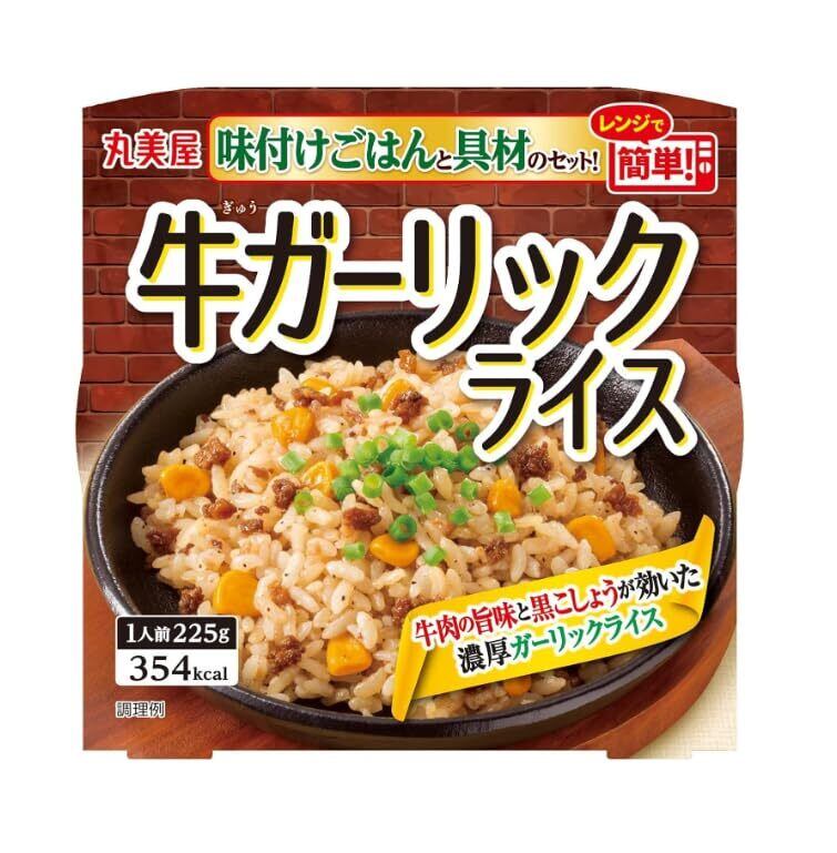 【ビビンバ】[ごはん]うるち米(国産)/酸味料|[具材]野菜(にんじん、筍、れんこん、大豆もやし、山くらげ)、コチュジャン、砂糖、醤油、ごま油、牛肉、きくらげ、にんにくペースト、ごま、香味油、魚介エキス、食塩、香辛料/調味料(アミノ酸)、増粘剤(キサンタン)、カロチノイド色素、(一部に小麦・牛肉・ごま・大豆を含む)【牛ガーリックライス】[ごはん]うるち米(国産)、果糖ぶどう糖液糖、発酵調味料、醤油、食塩、チキンエキス/酸味料、(一部に小麦・大豆・鶏肉を含む)|[具材]コーン、醤油、牛肉、粒状植物性たん白、香味油、発酵調味料、砂糖、豚脂、たん白加水分解物、ガーリックパウダー、フライドガーリック、でん粉、胡椒、デキストリン/調味料(アミノ酸)、カラメル色素、pH調整剤、増粘剤(キサンタン)、香料、香辛料抽出物、(一部に小麦・牛肉・大豆・豚肉を含む)