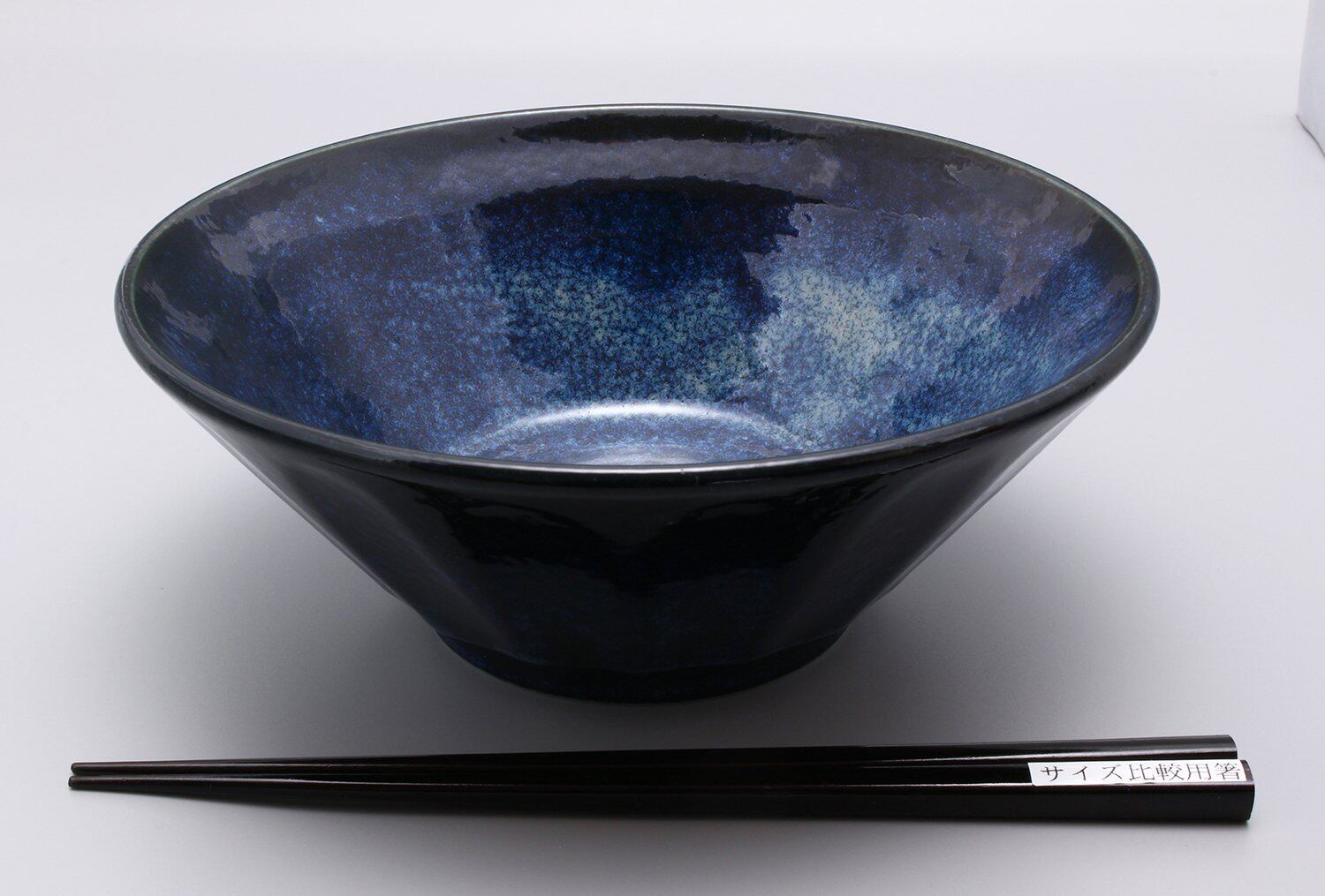美濃焼 窯変ソギ柄 ラーメン鉢 どんぶり 丼 鉢 器 うどん そば 蕎麦 直径約19.7×高さ7.5cm 電子レンジ 食洗機対応 紺色 ネイビー 日本製 133-61508