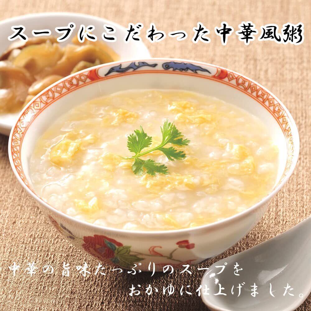 中華の旨味たっぷりのスープをおかゆに仕上げました。ふんわり卵を加えた食べ応えのある味わいです。主食としてはもちろんですが、朝食や夜食、ダイエット、万が一の防災準備品など、色々なシーンでご利用戴けます。(温めずにそのままでもお召し上がりいただけます。)国内産コシヒカリ100%使用。110kcal。