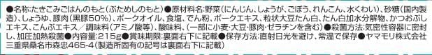 野菜(にんじん、しょうが、ごぼう、れんこん、水くわい)、砂糖(国内製造)、しょうゆ、豚肉(黒豚50%)、ポークオイル、食塩、でん粉、ポークエキス、粒状大豆たん白、たん白加水分解物、かつおぶしエキス、こんぶエキス/調味料(アミノ酸等)、酸味料、(一部に小麦・大豆・豚肉・ゼラチンを含む)