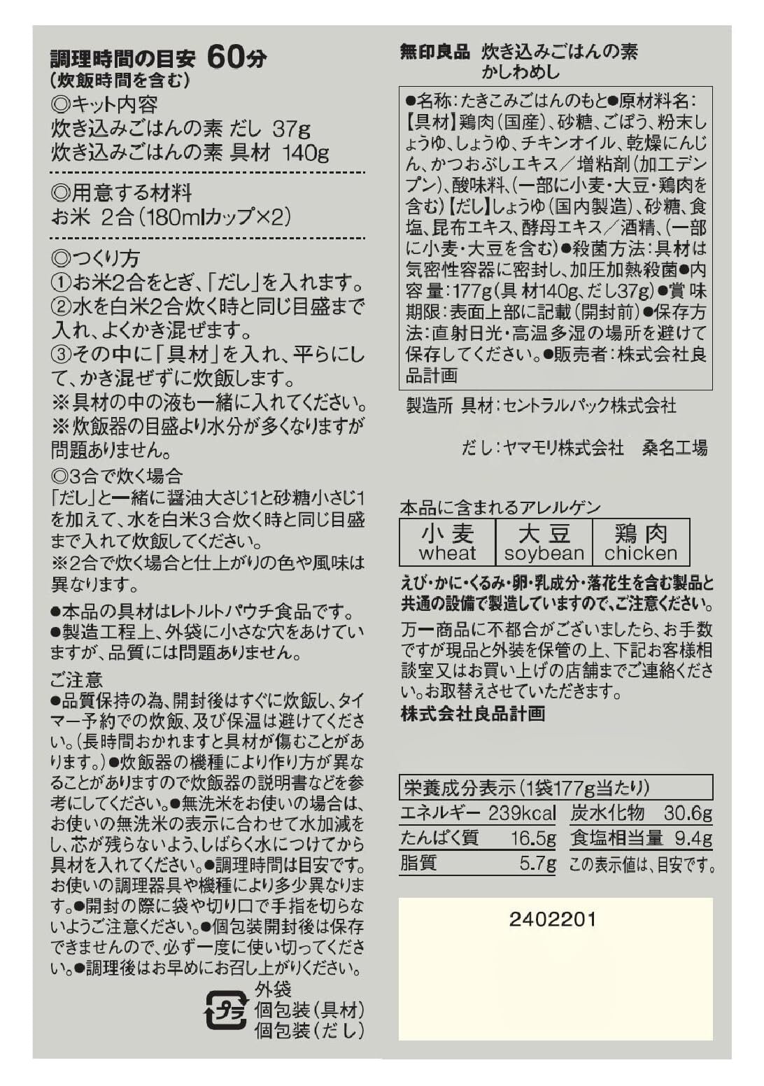 無印良品 炊き込みごはんの素 かしわめし お米2合用 (2~3人前) 177g 84132742