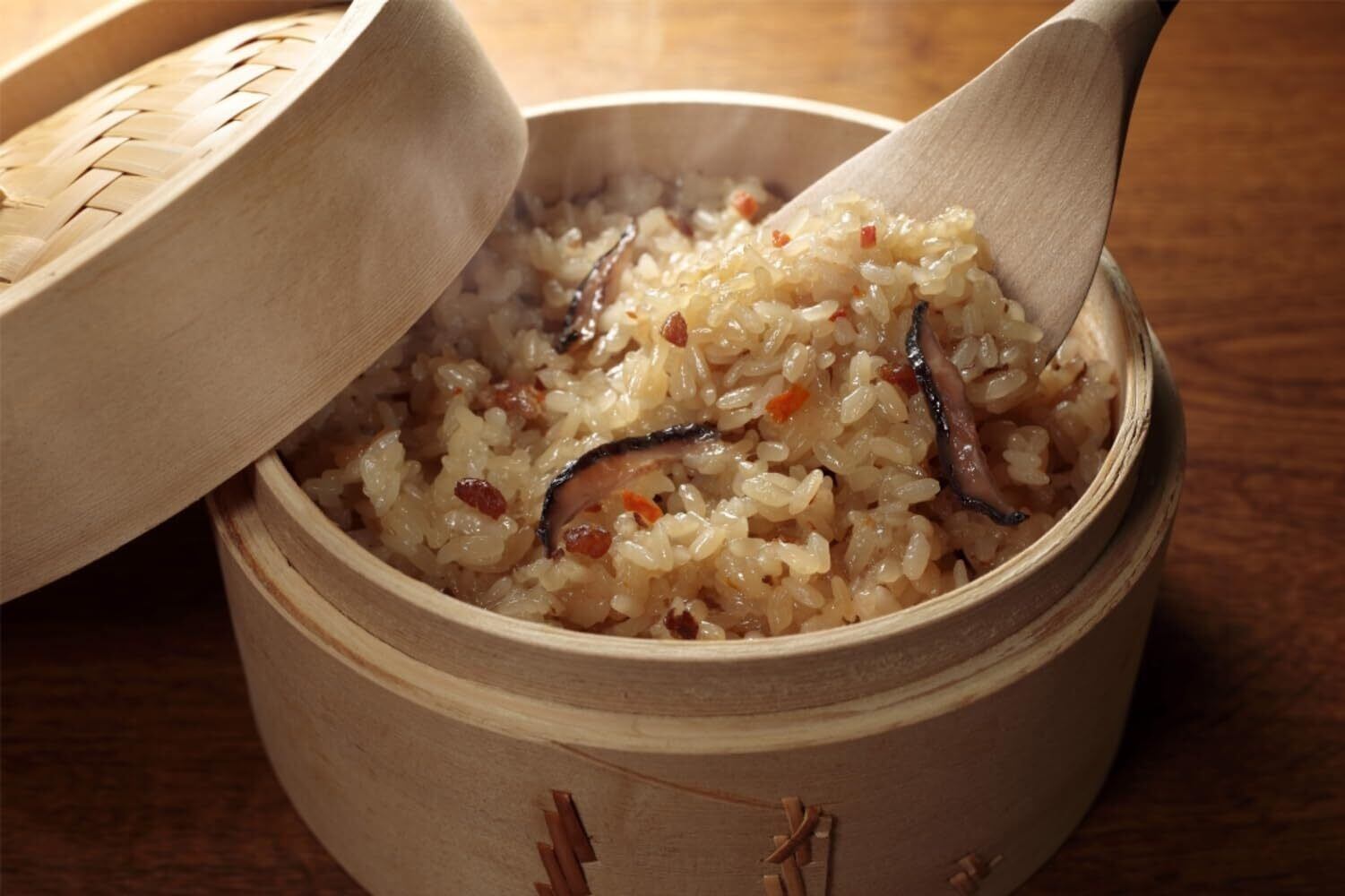 もち米とうるち米を8:2の割合でブレンド。醤油とごま油の風味が程よい、中華ちまき風のおこわ。
