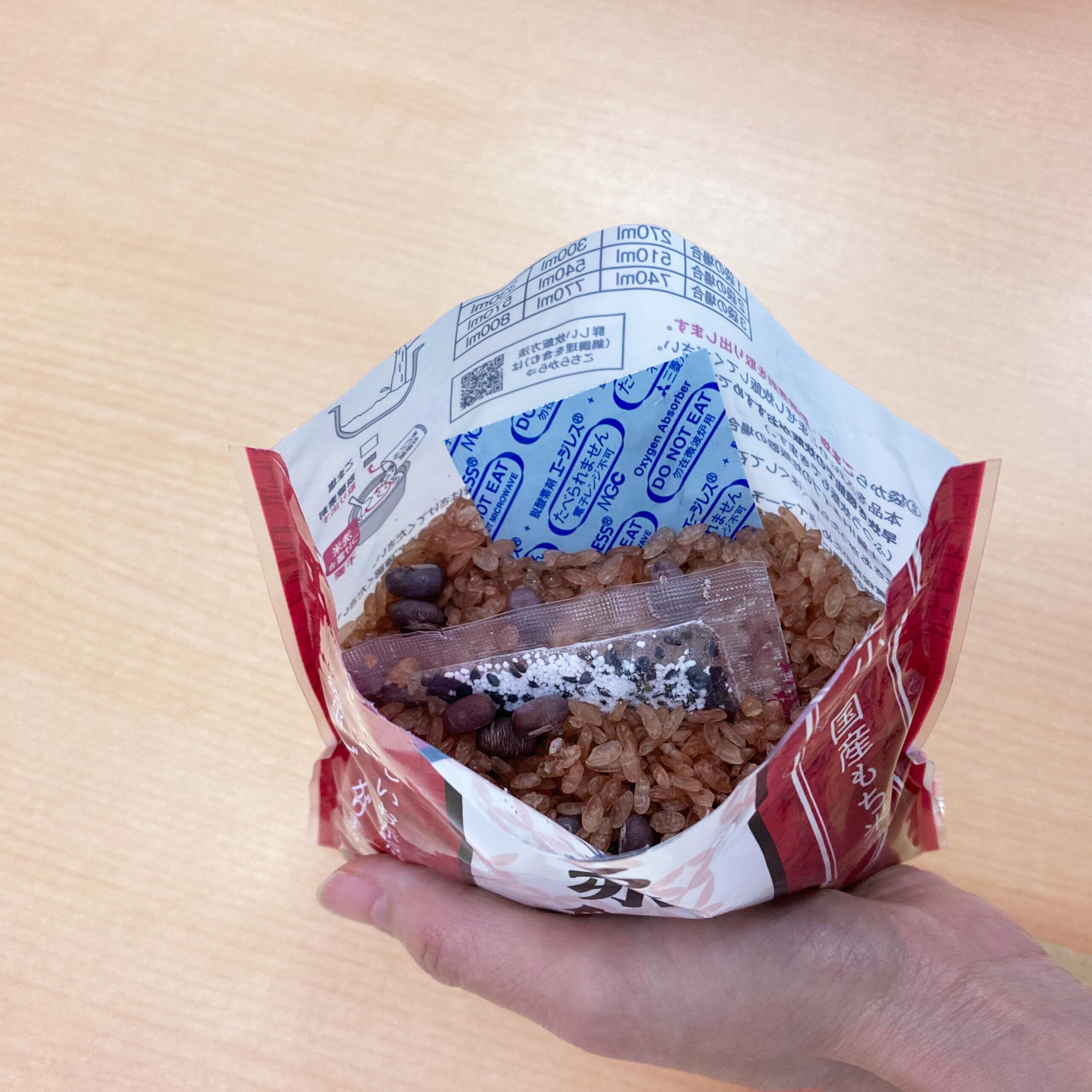 ご祝儀袋をイメージした復路に小豆で風味付けした国産もち米、北海道産小豆、ごま塩が入っています。 洗米・つけ置き不要。早炊き米の為、炊飯器「早炊きモード」で約40分で炊飯出来ます。ハレの日、いつもの食卓で食べたい時にいつでも手軽にお赤飯が召し上がれます。 ※1袋炊きあがり目安:お茶碗3膳分