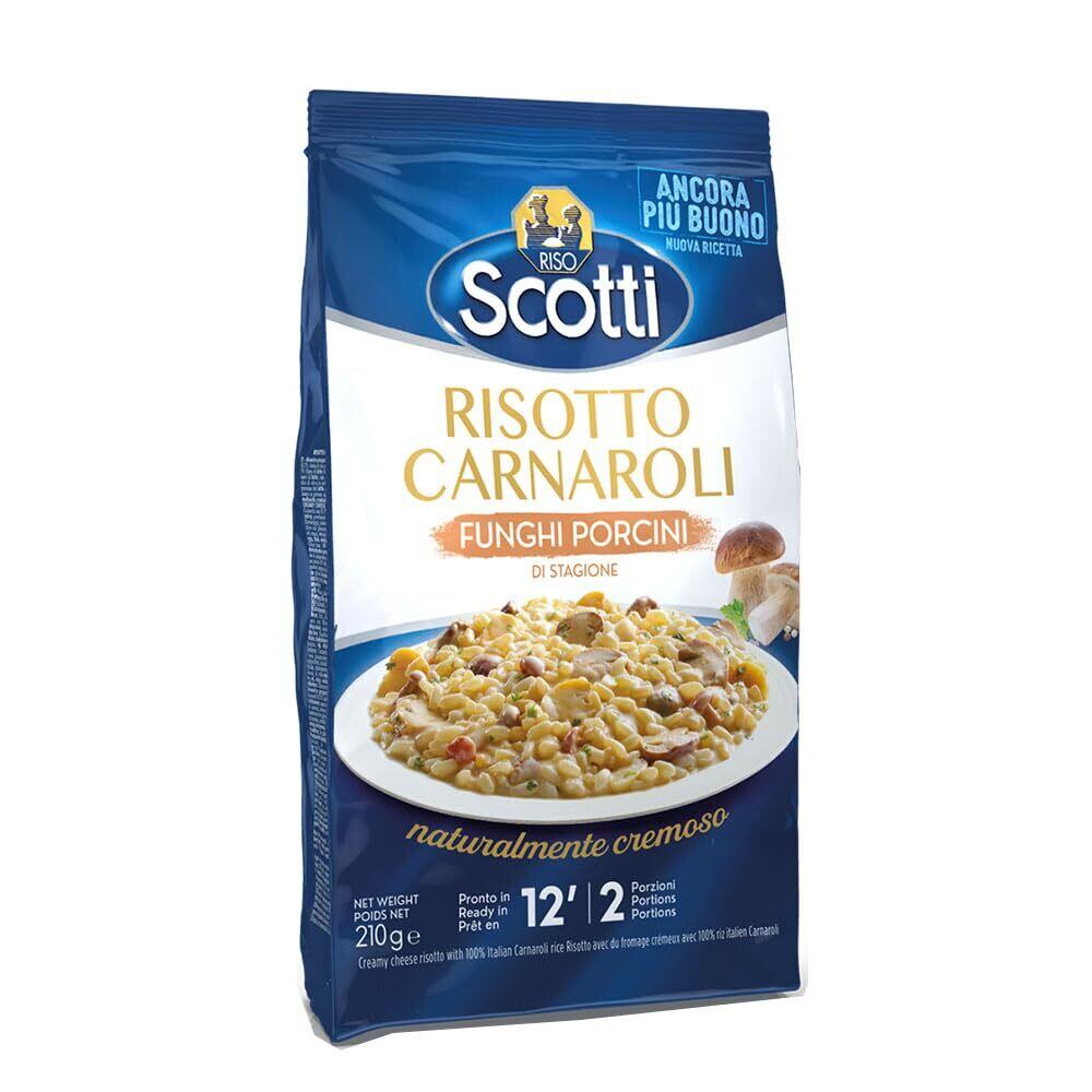 【ポルチーニ】カルナローリ米(イタリア産)、米粉(イタリア産、ルーマニア産)、ポルチーニ、ホエイ、粉チーズ、食塩、オリーブオイル、グルコースシロップ、ミルクプロテイン、全粉乳、砂糖、たまねぎ、パセリ、ガーリック香料、(一部に乳成分を含む)
