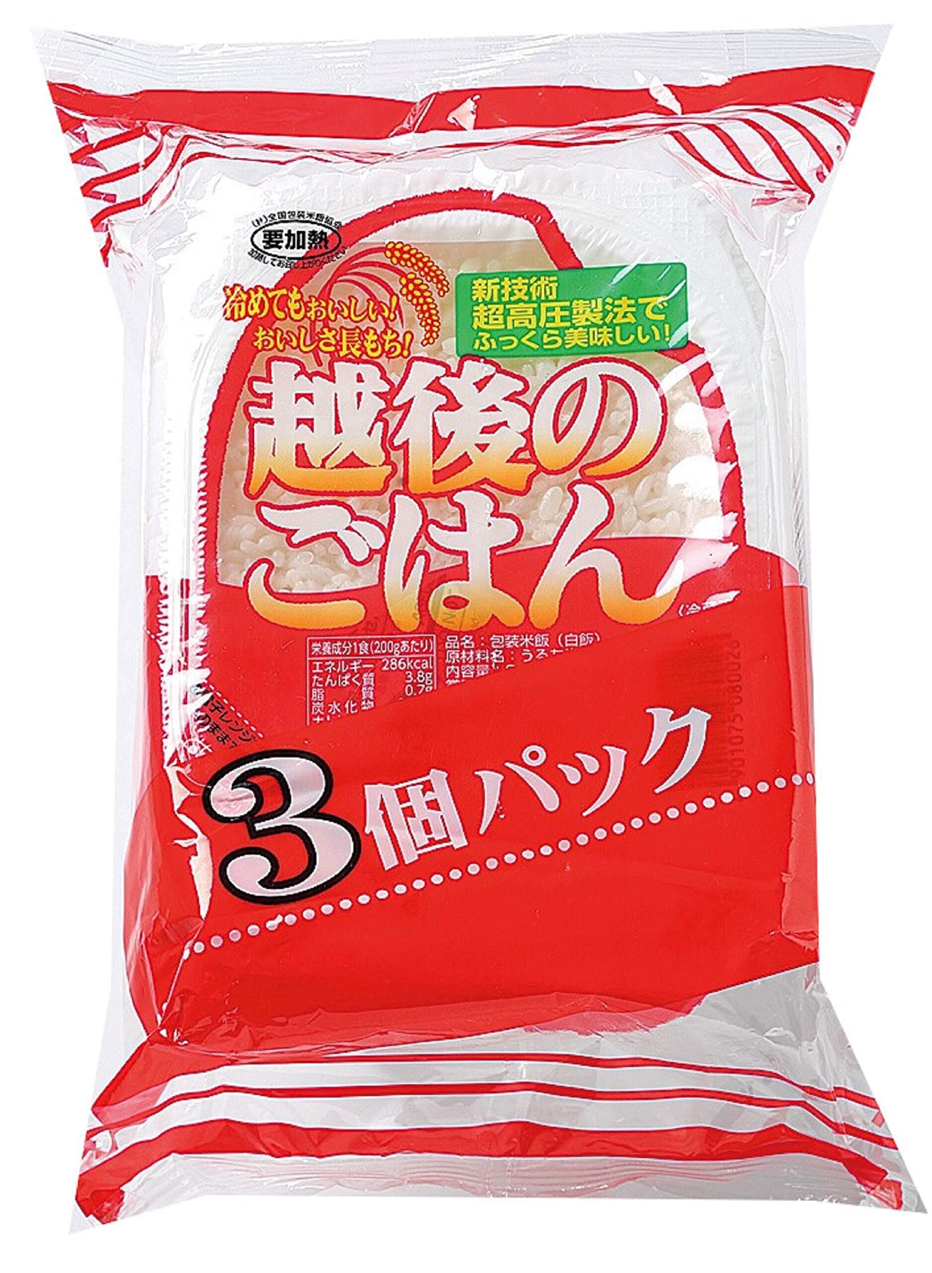 レンジでチンするだけで、炊立ての味を超える美味しさのご飯になります。冷めてもおいしい、おいしさ長もち。超高圧殺菌により、添加物は一切加えていません。