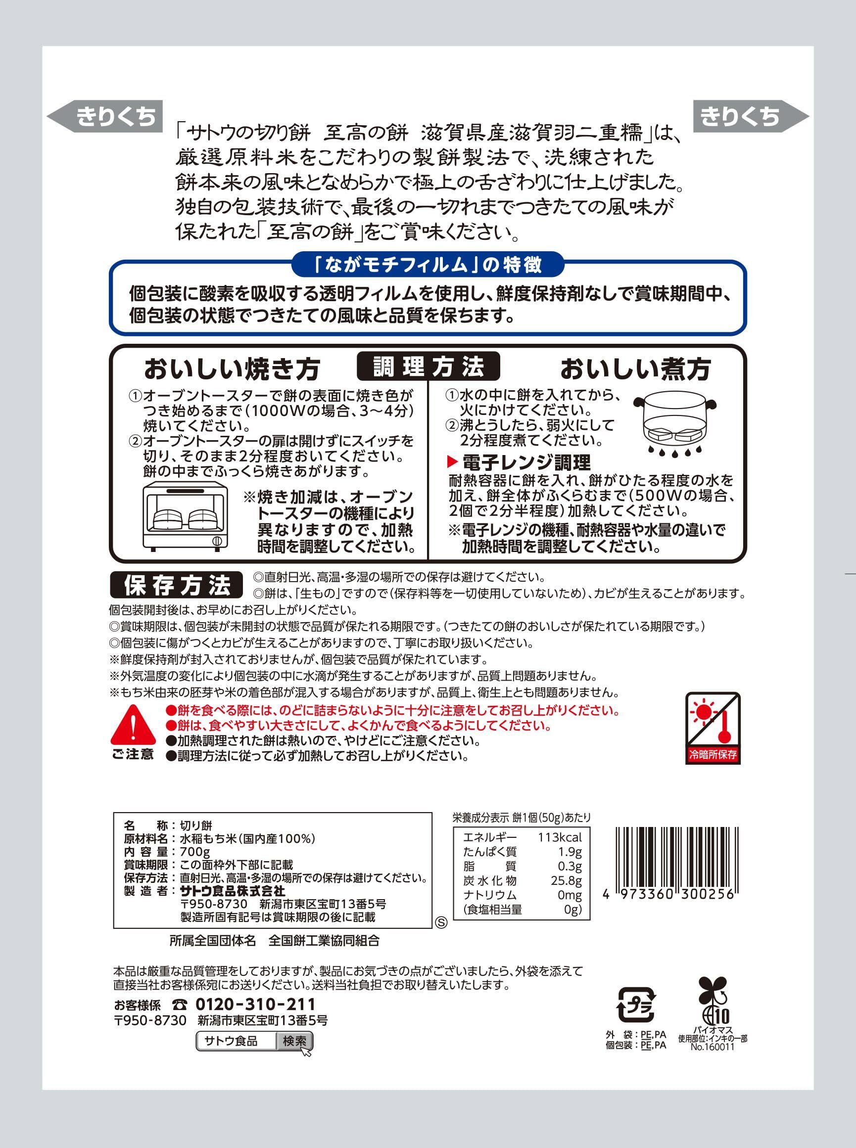 サトウ食品 サトウの切り餅 至高の餅滋賀県産羽二重糯 700g