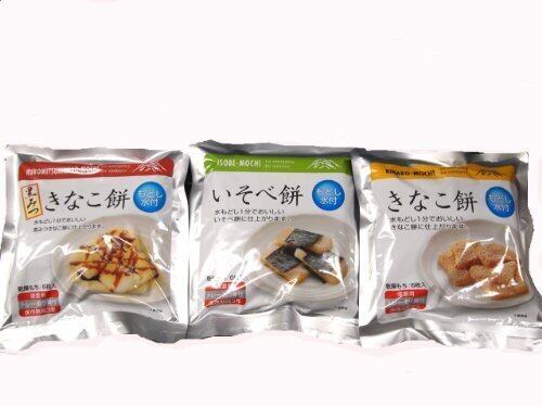 非常食 もどし水入り きなこ餅・いそべ餅・黒みつきなこ餅(3点) どこでもすぐに美味しい、餅がいただけます。