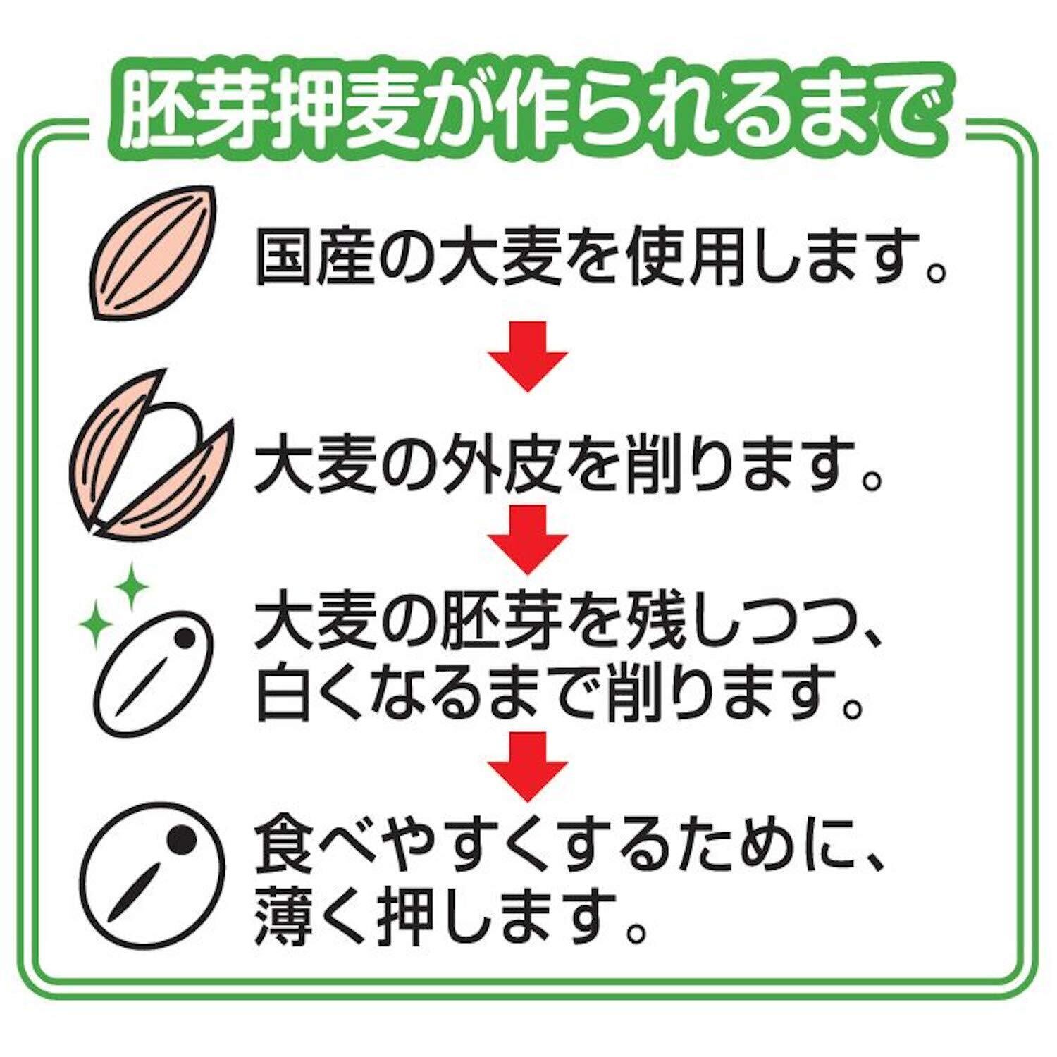 からだ実感。胚芽押麦は、不飽和脂肪酸やビタミンEが豊富に含む「胚芽」部分を残した大麦です。白米に不足しがちな食蜜繊維が補えます。毎日の習慣にしてみませんか。体内にとりこまれてた食物繊維は、ほとんど変化せずに、腸内にある他の食品をまき取りながら体外へ出ようとします。その結果、腸の動きが活発になり便通改善効果がみられるようになります。