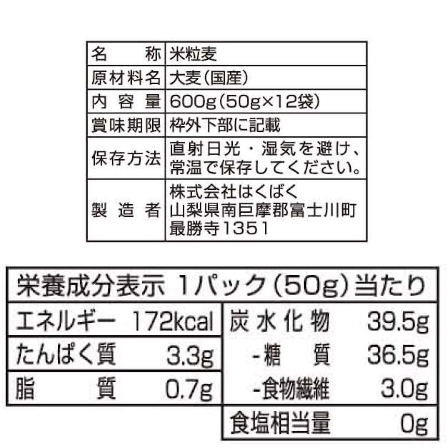 ・湿気や虫害などを避けるため、密封できる容器で保管し、早めにお召し上がりください。・農産物を原料としていますので色(白さ、黄色味)、形が異なる場合がありますが、収穫時期、品種の差によるものです。・炊飯器で純麦ごはんを保温しておきますと麦が変色(褐色)することがありますが、品質には問題ありません。おいしくお召し上がりいただくために冷凍保存をおすすめいたします。