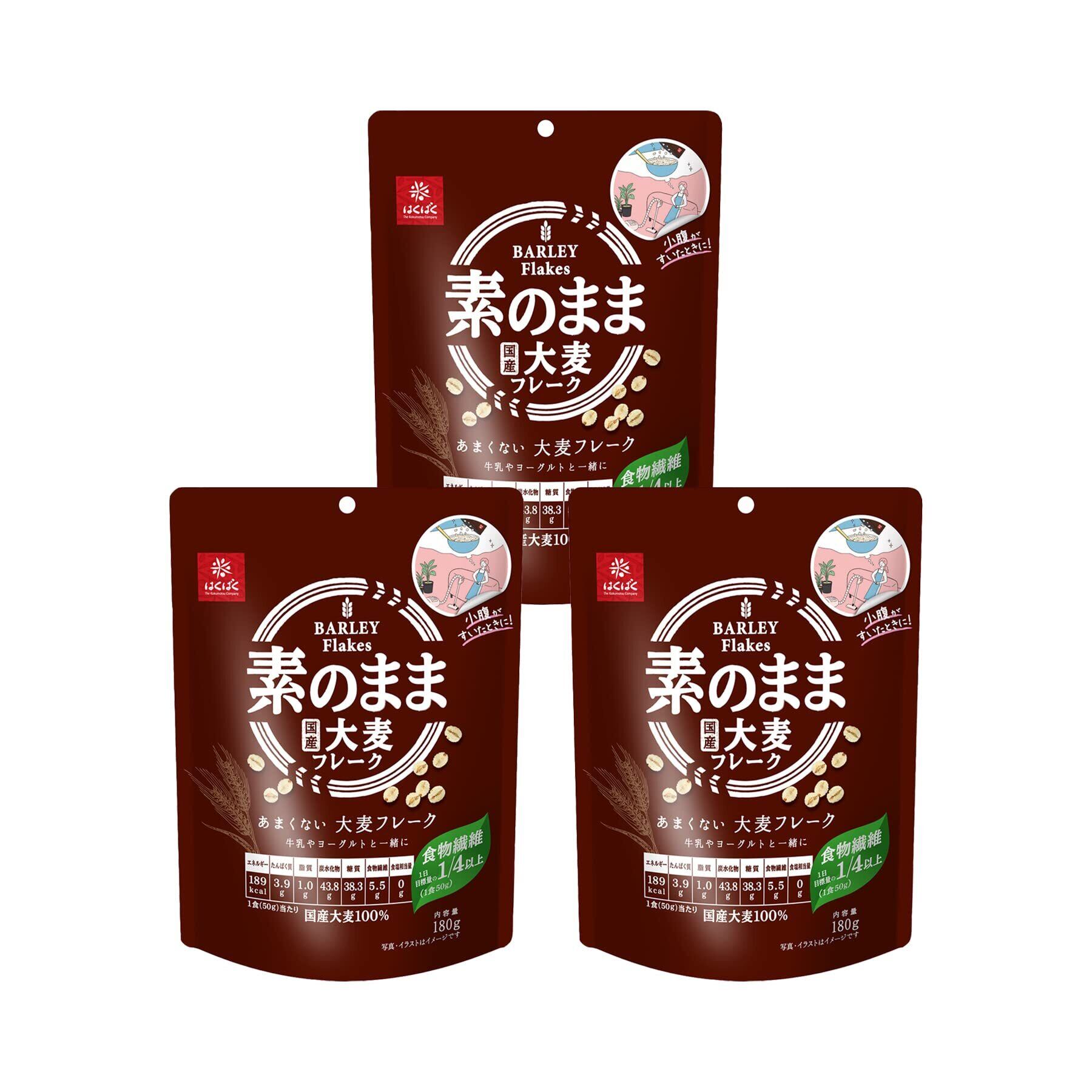"うるち性の大麦を浅焼き焙煎してフレークにしました。 身体にやさしく、身体においしい、あまくないシンプルなシリアルです。 国内産の原料を使用し、加工から包装まで一貫して国内で行っています。 1食(50g)で、食物繊維が5.5gと1日の目標量の1/4以上を摂ることができます。(日本人の食事摂取基準2020年版より) 普段のヨーグルトや牛乳に振り掛けて召し上がってください。 また、サラダのトッピングや揚げ物の衣、おかずにトッピングしてアクセントを楽しむこともできます。 1食(50g)当たり エネルギー189kcal タンパク質3.9g 脂質1.0g 炭水化物43.8g(糖質38.3g 食物繊維5.5g) 食塩相当量0g"