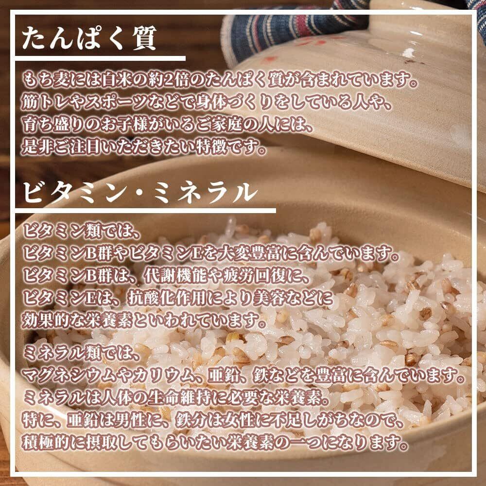 単品の国産もち麦です。 当店のもち麦は、大麦の一種のダイシモチ(讃岐もち麦)という品種です。 裸麦のうち「もち性」があり「大麦β-グルカン」という食物繊維を豊富に含み、穀粒がほんのり紫色で美味しく麦飯独特のぼそぼそ感がないのが特徴。 もち麦は粘性が強く、モチモチした粘りのある食感を持ちます。 また、加熱調理することで冷めても固まりにくく、モチモチ感が変わらない加工適性があり、豊富な食物繊維を含んでいます。お客様から、ご注文頂いてから、ひとつひとつ丁寧に真空し梱包させていただいております。脱酸加工により、鮮度を落とさずご自宅までお届けいたします。